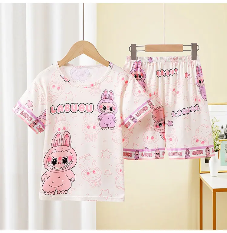 Compre Comércio exterior pijamas infantis verão novas meninas shorts de manga curta bonito meninas 'bebê médio e grande terno infantil homewear no atacado no Joom.pro