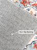 O material é superfície 100% poliéster, a espessura é de cerca de 4mm, a base é base antiderrapante TPR. O estilo do padrão é estilo boêmio, estilo real e étnico. Adequado para sala de estar, quarto e decoração de casa. A característica é fácil limpeza, dobragem e base antiderrapante.