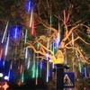 Luzes de chuva de meteoros LED, à prova d'água, gota de chuva caindo, luz de corda de fadas para decoração de pátio de festa de Natal (Plugue UE)