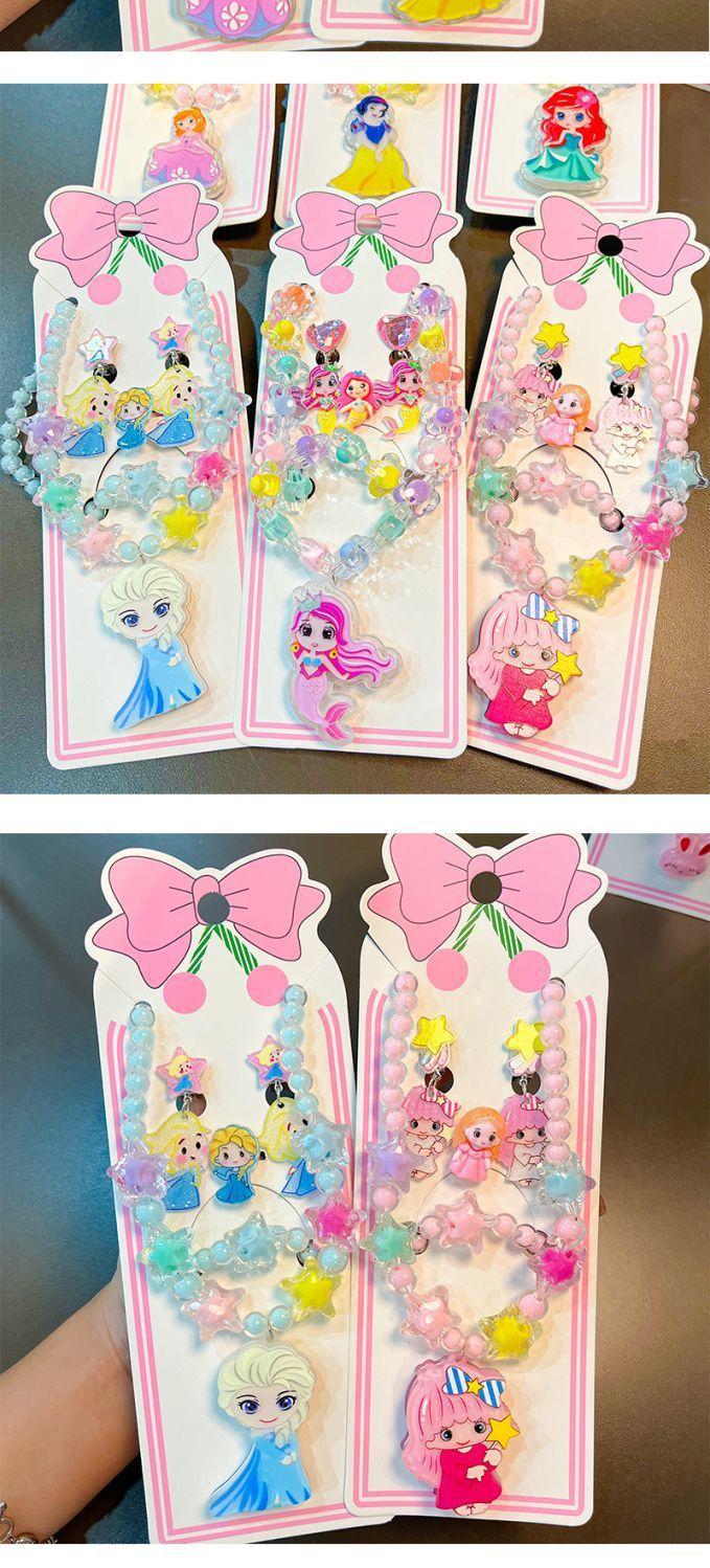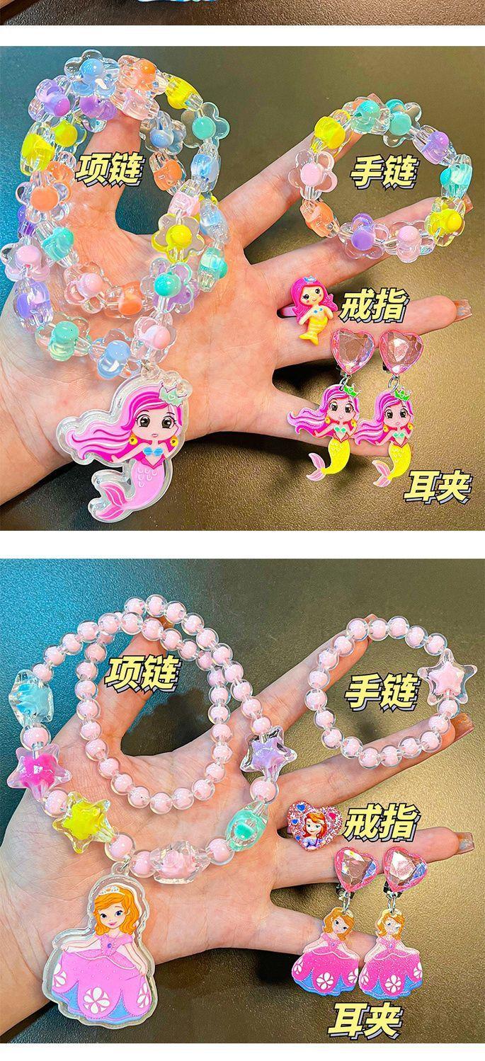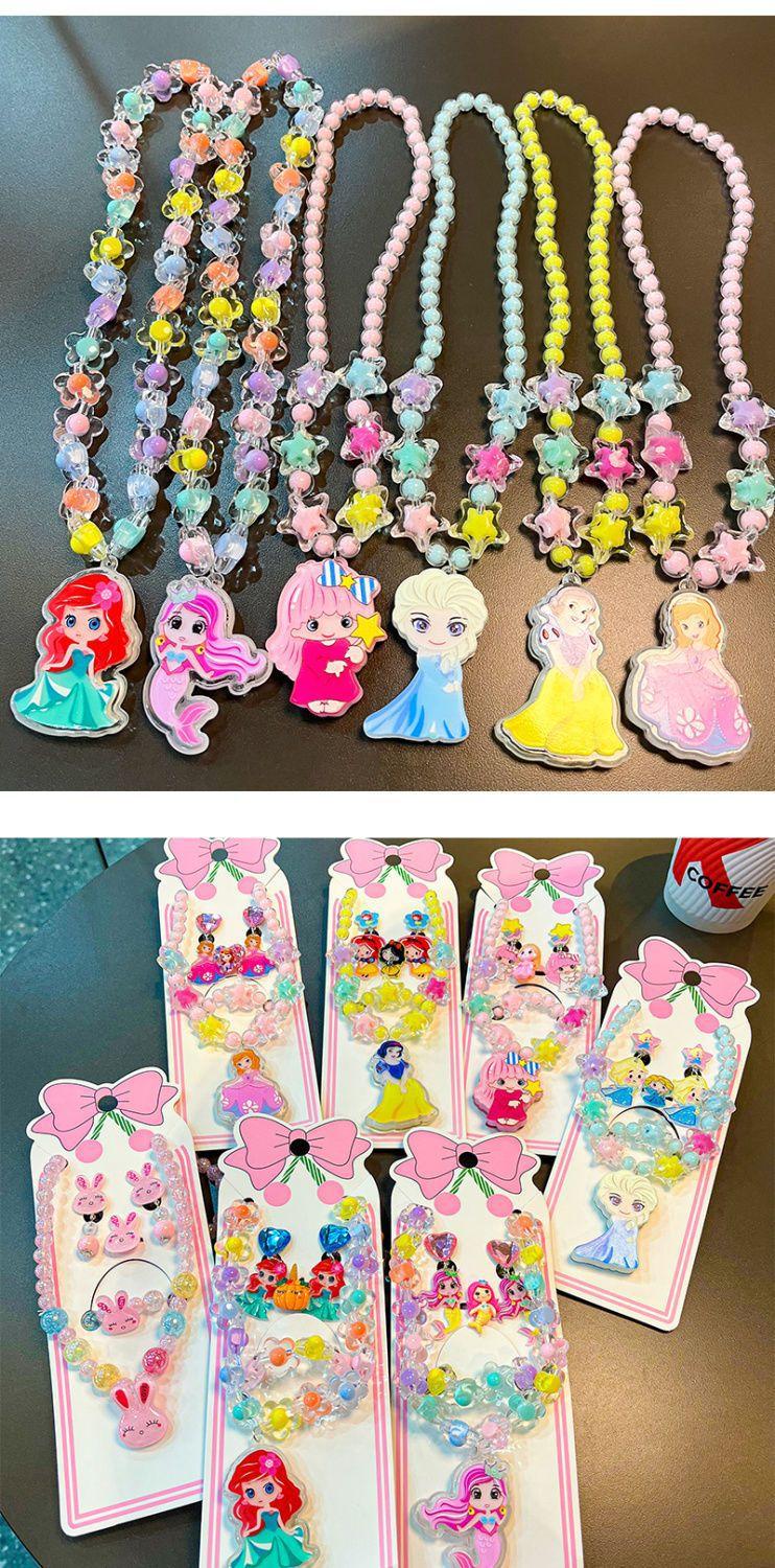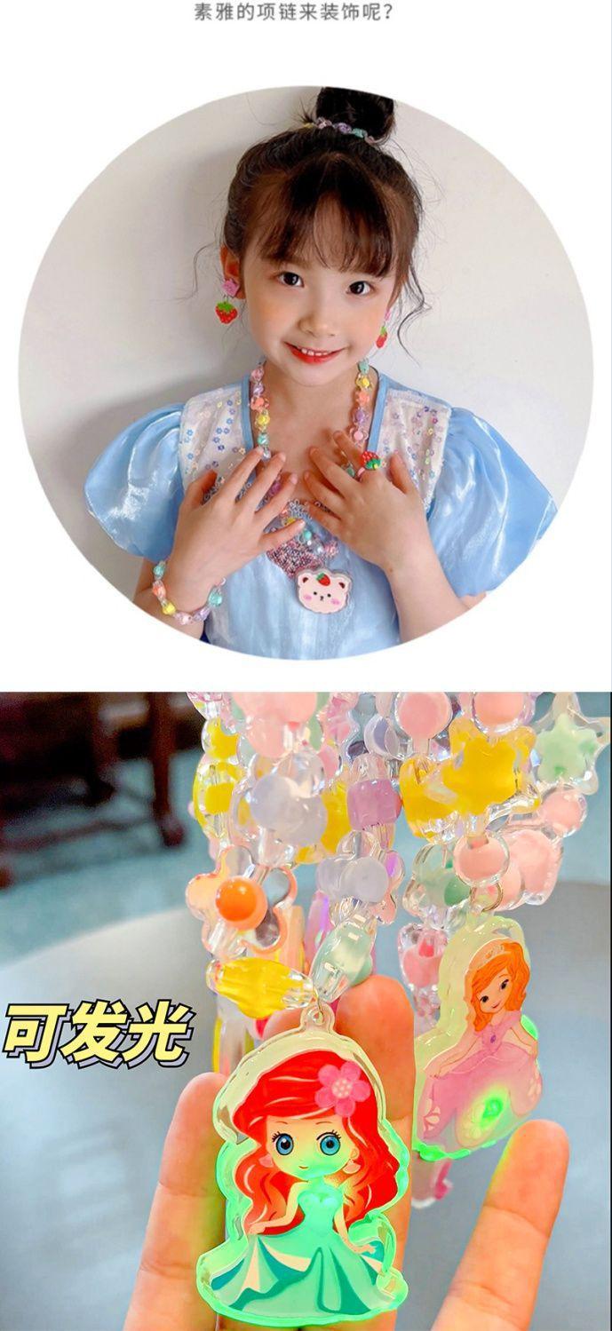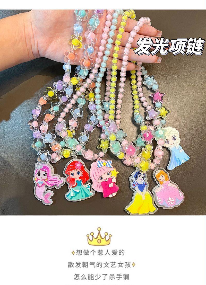 Colar Luminoso Princesa Elsa Conjunto Anel Pulseira Infantil Decoração Brinquedo para Bebê Acessórios para Meninas Frozen