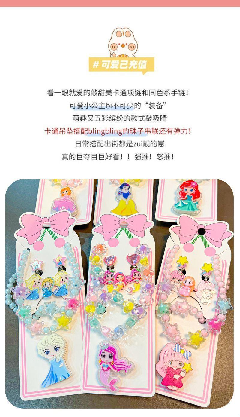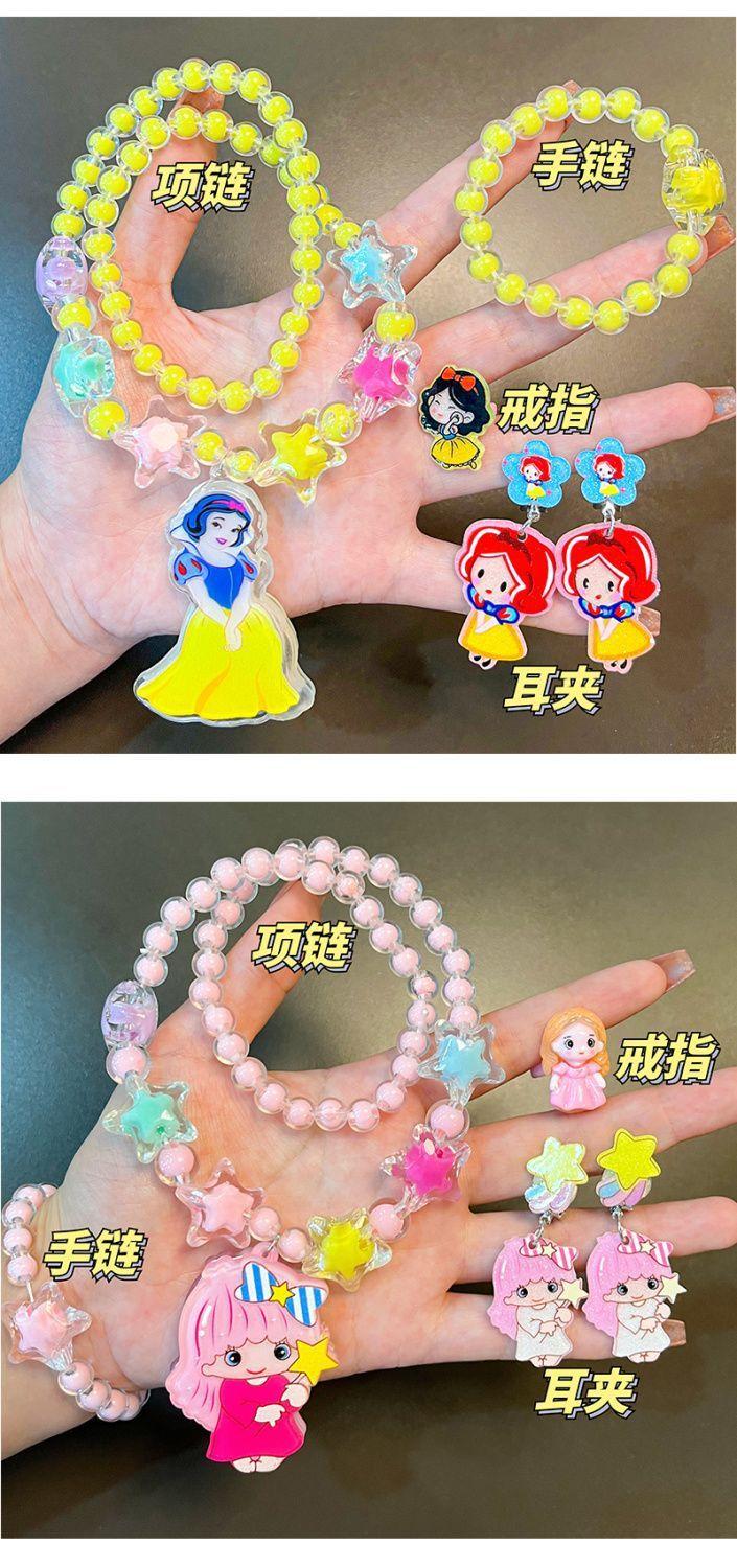 Colar Luminoso Princesa Elsa Conjunto de Anel e Pulseira Infantil Joias Brinquedos de Bebê Acessórios para Meninas Frozen