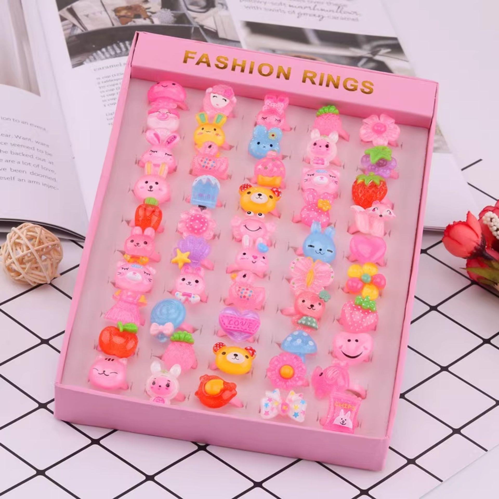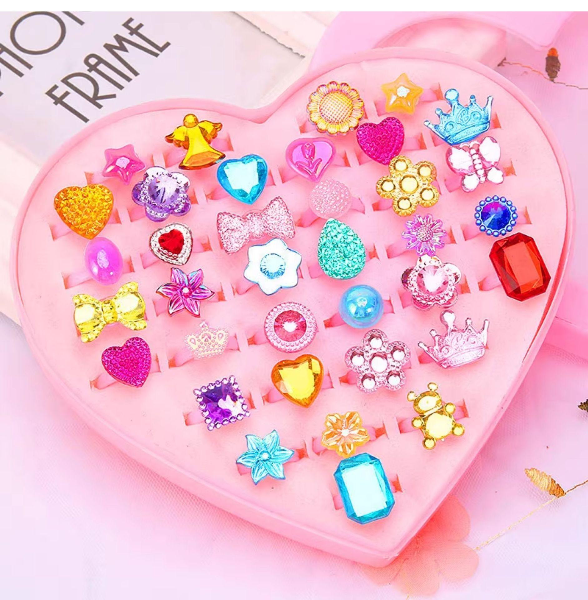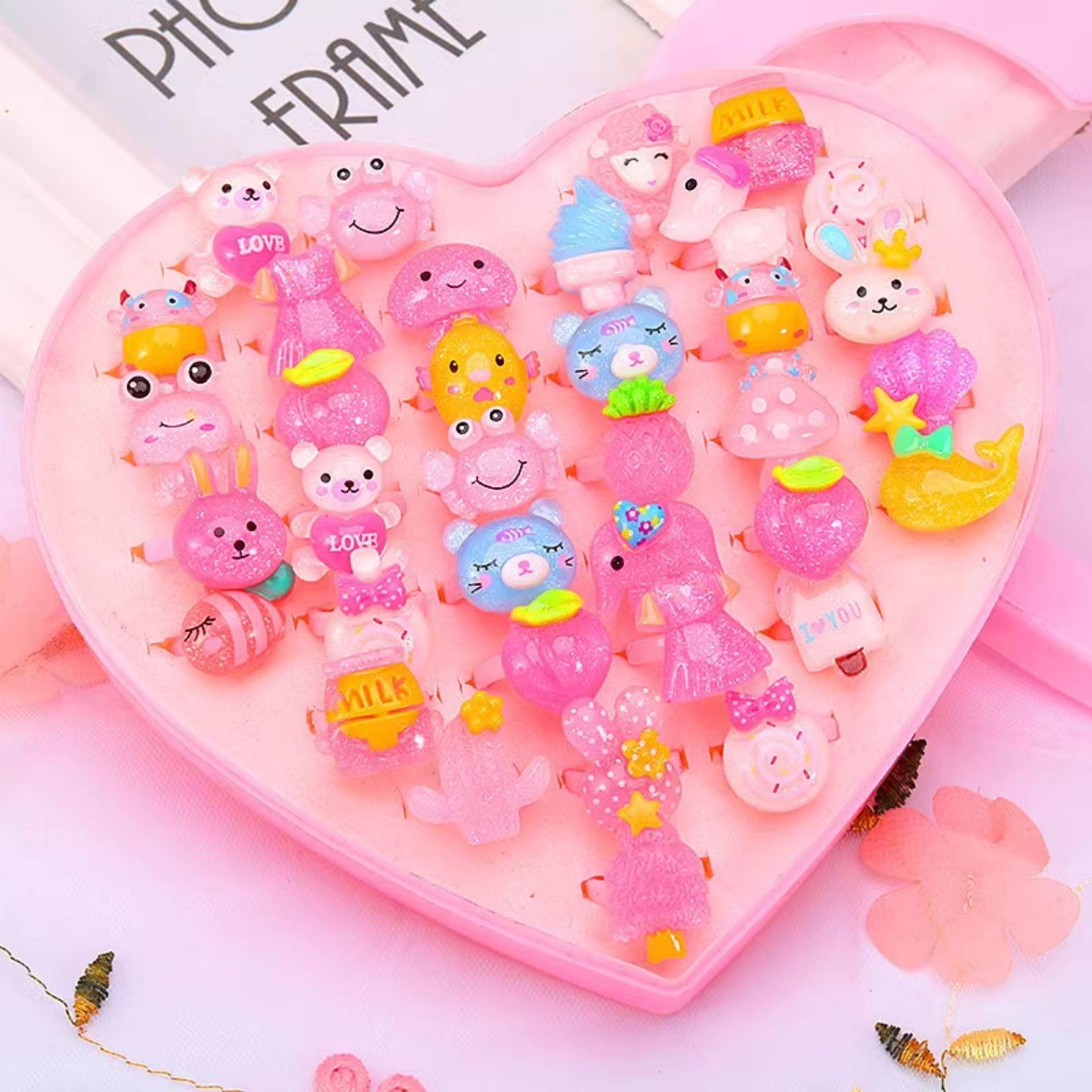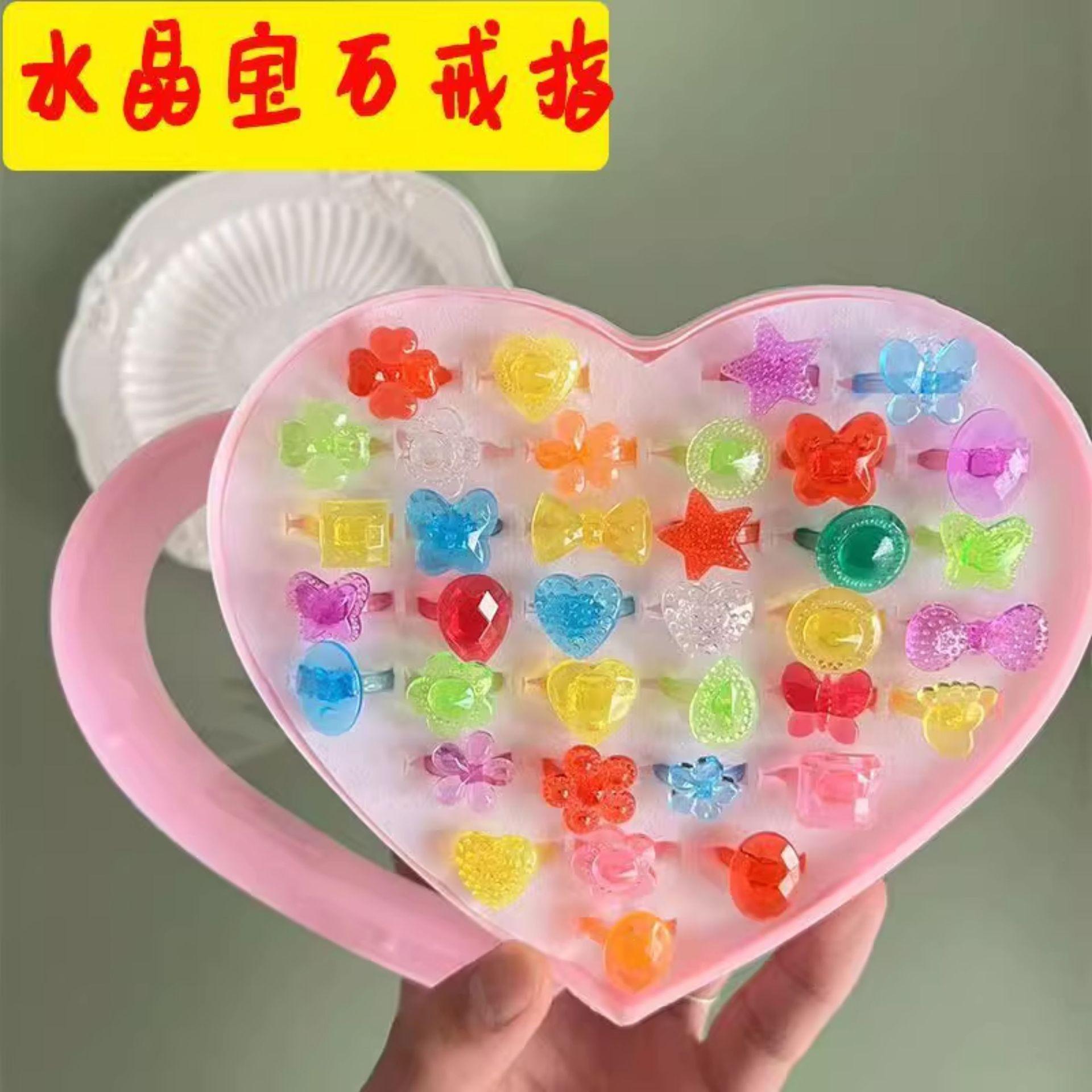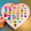 Anel Infantil de Cristal Gema Borboleta Joia para Bebê Menina Desenho Animado Plástico Princesa Anel Pequeno Presente de Dia das Crianças