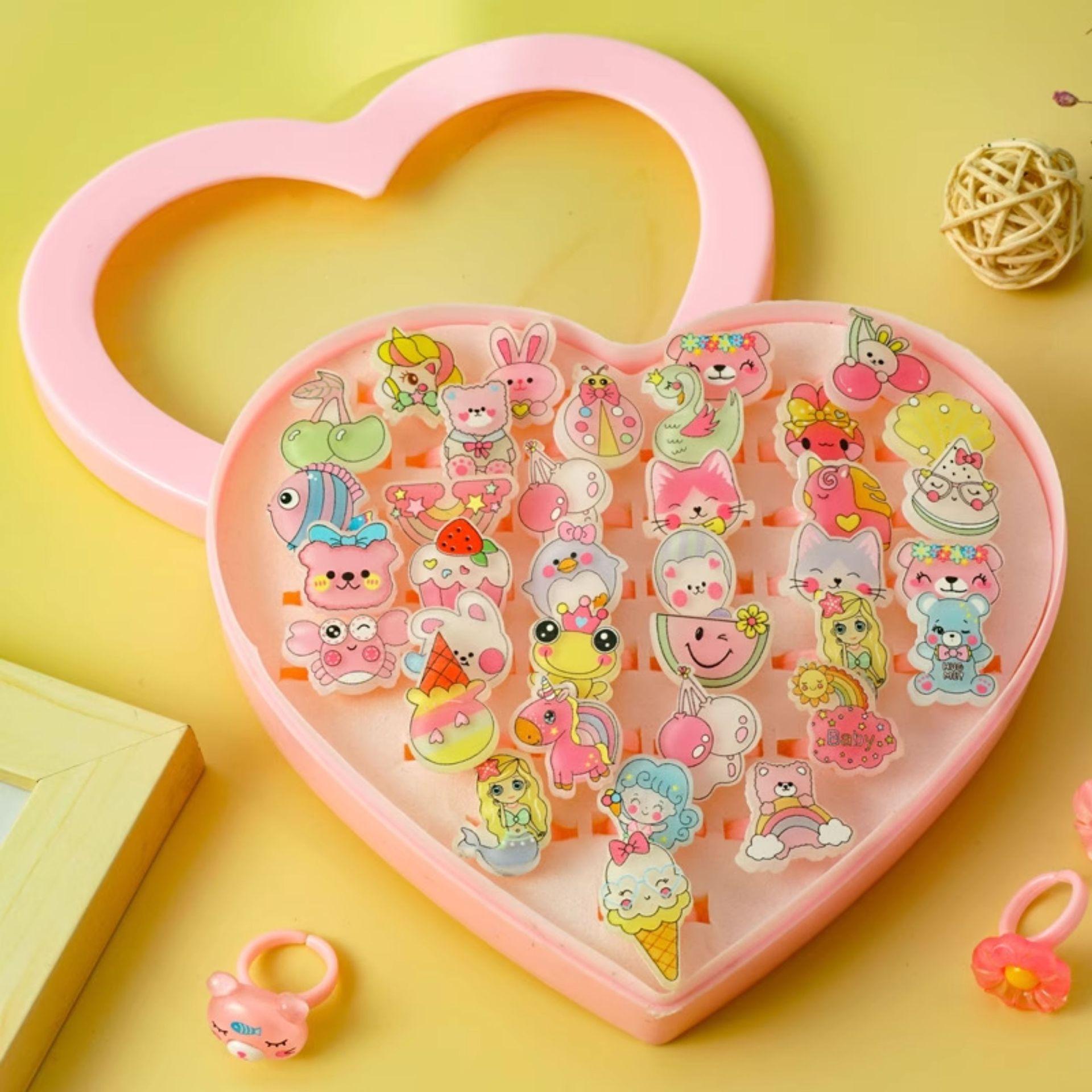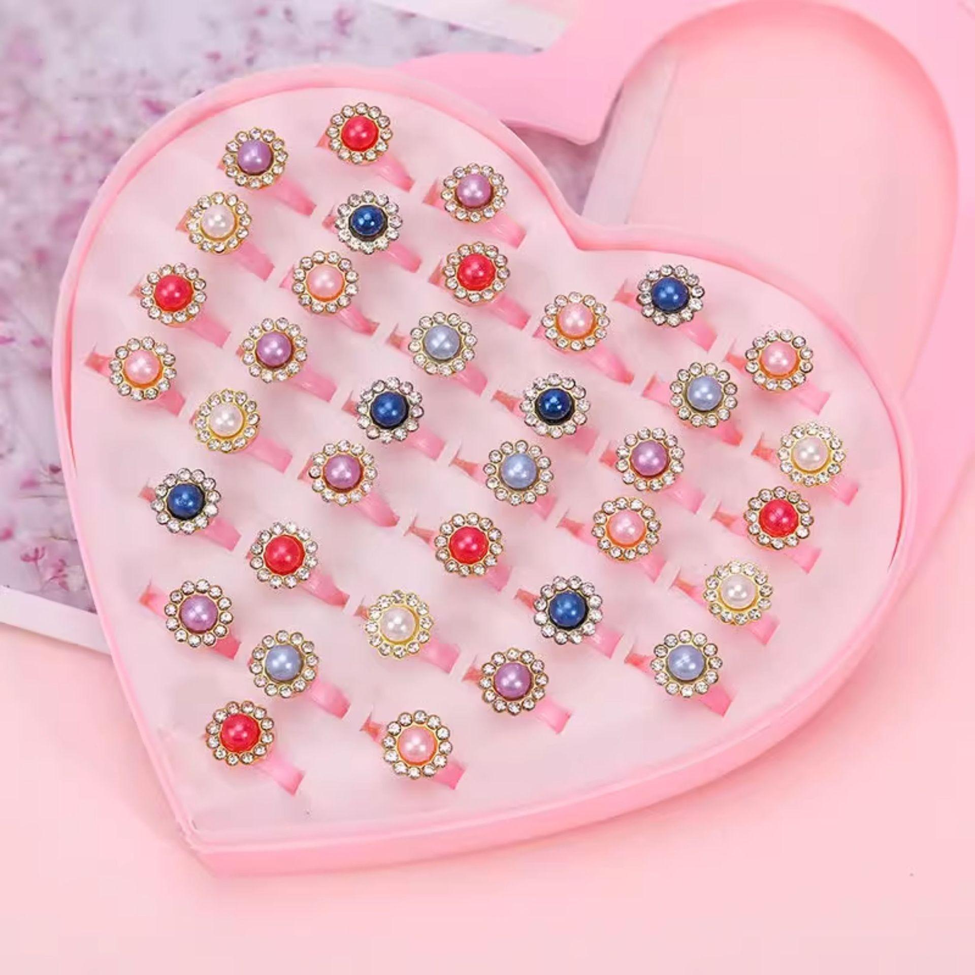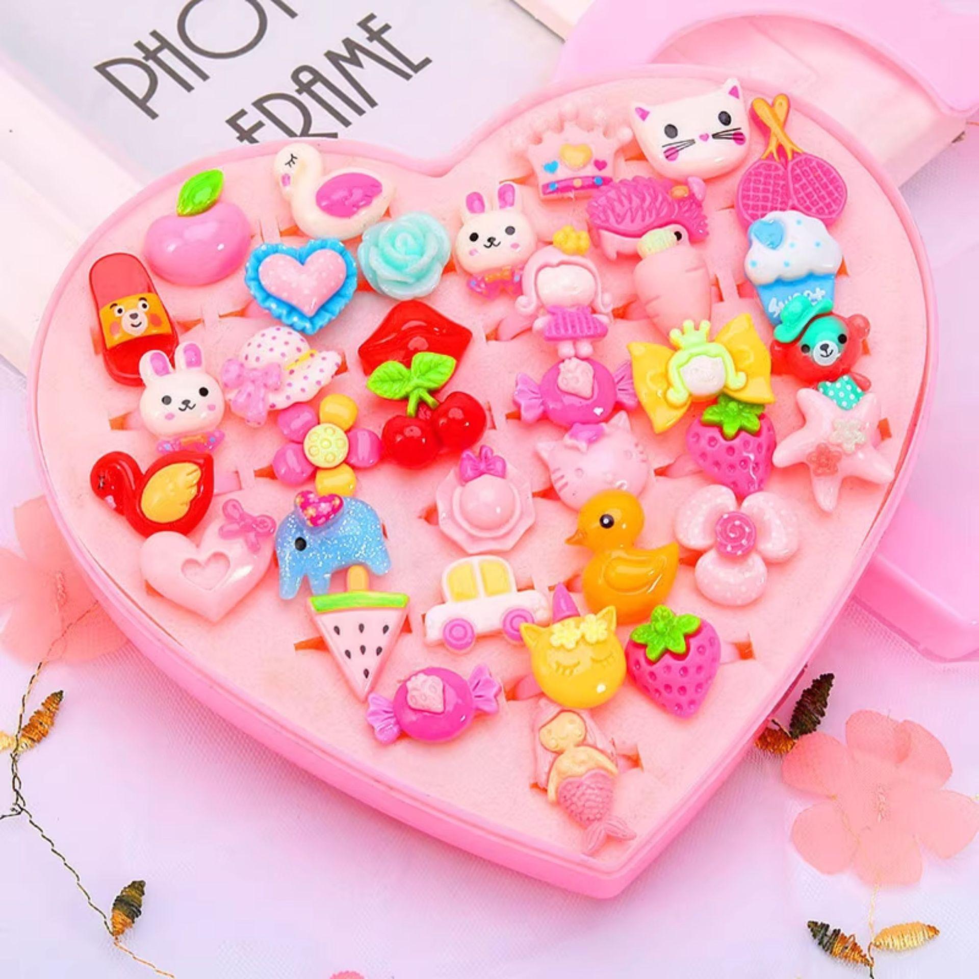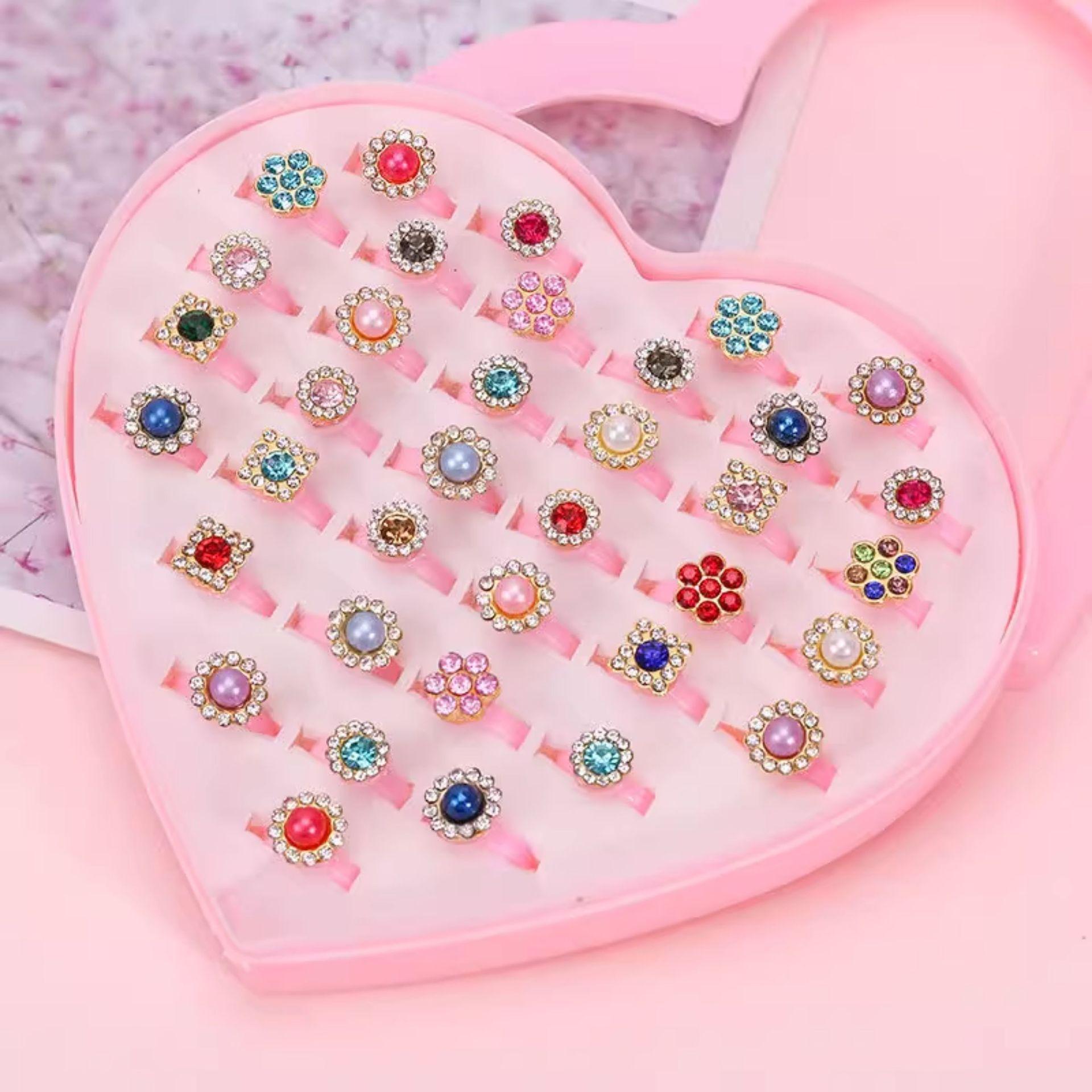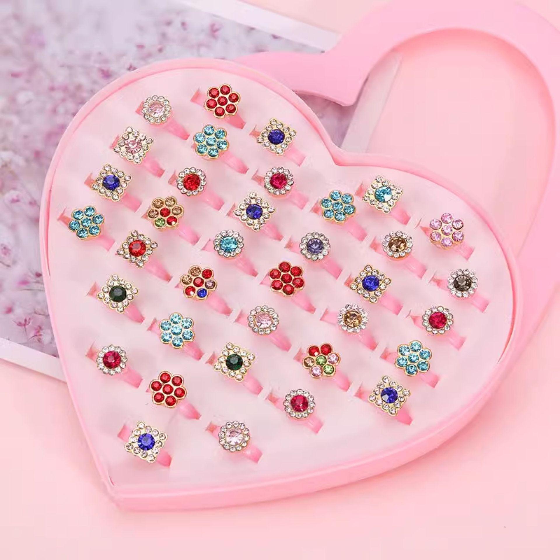 Anel Infantil de Cristal Gema Borboleta Joia para Bebê Menina Desenho Animado Plástico Princesa Anel Pequeno Presente de Dia das Crianças