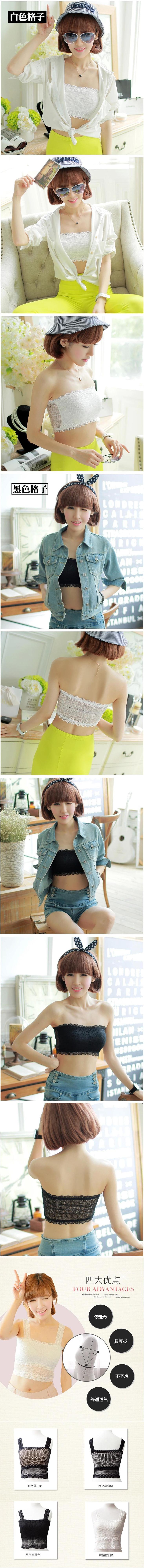 Primavera e Verão Tomara que Caia Envolto no Peito Curto Fino Anti-Exposição Renda Top Tubo Preto Íntimos para Usar por Baixo Sem Bojos