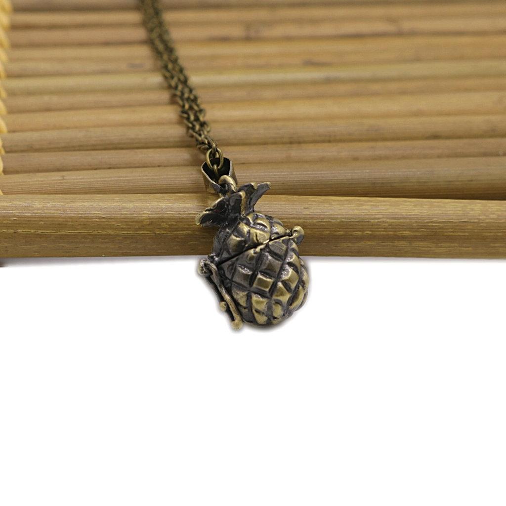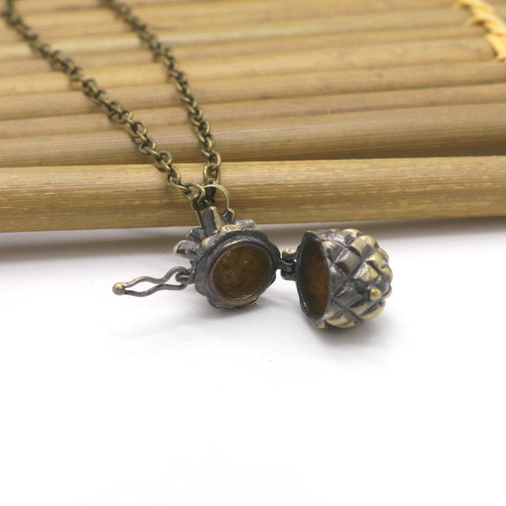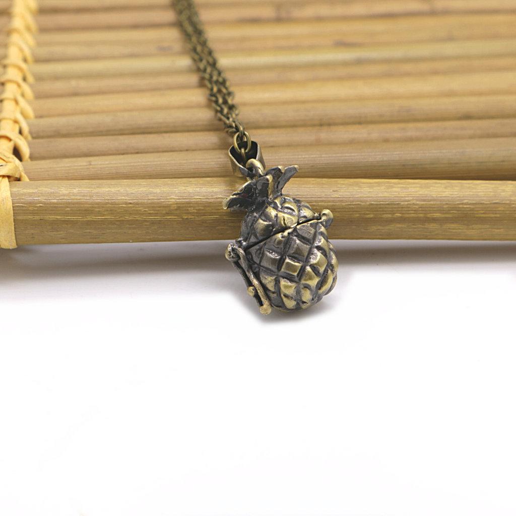 Latão aberto oco armazenamento Colar pingente memorial bronze gota d'água abacaxi joia caixa gawu
