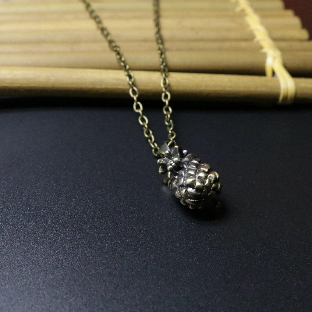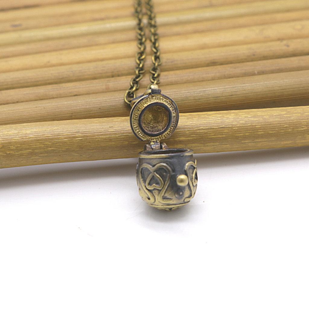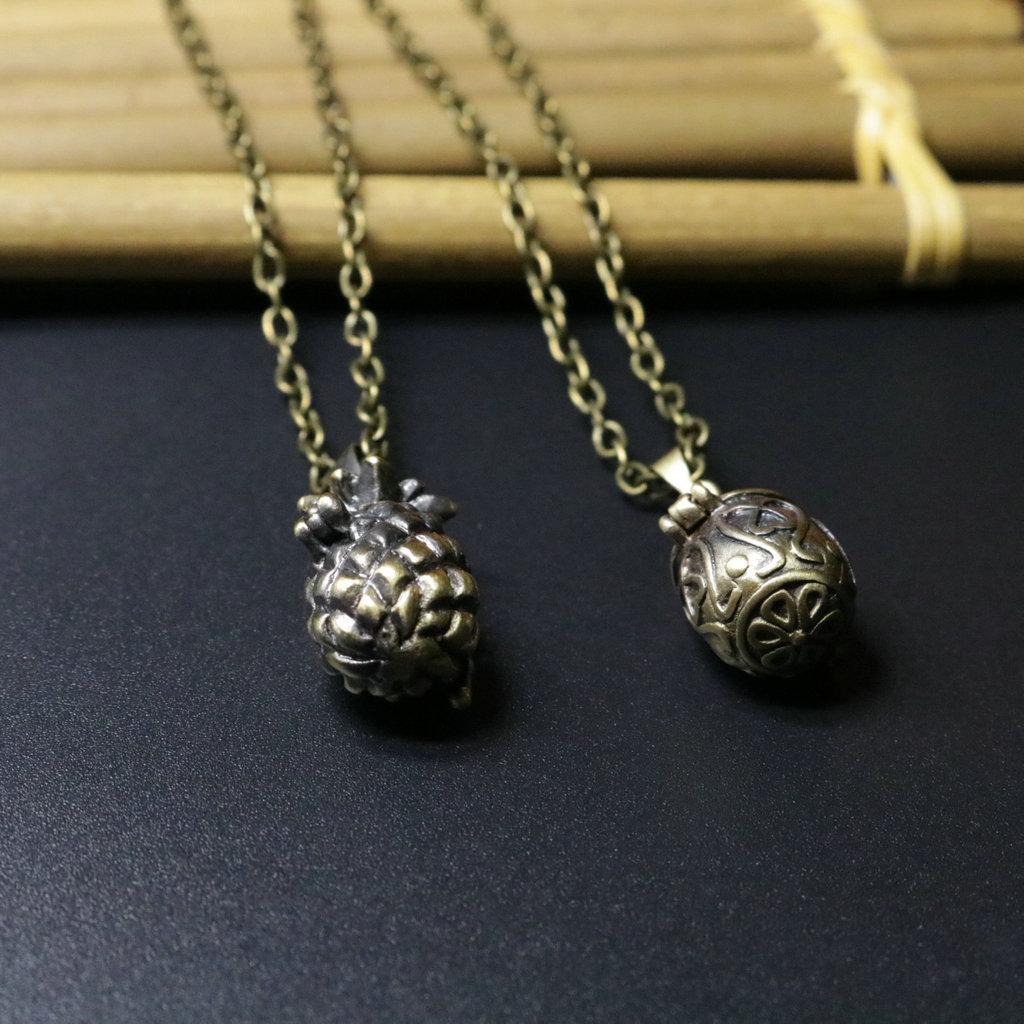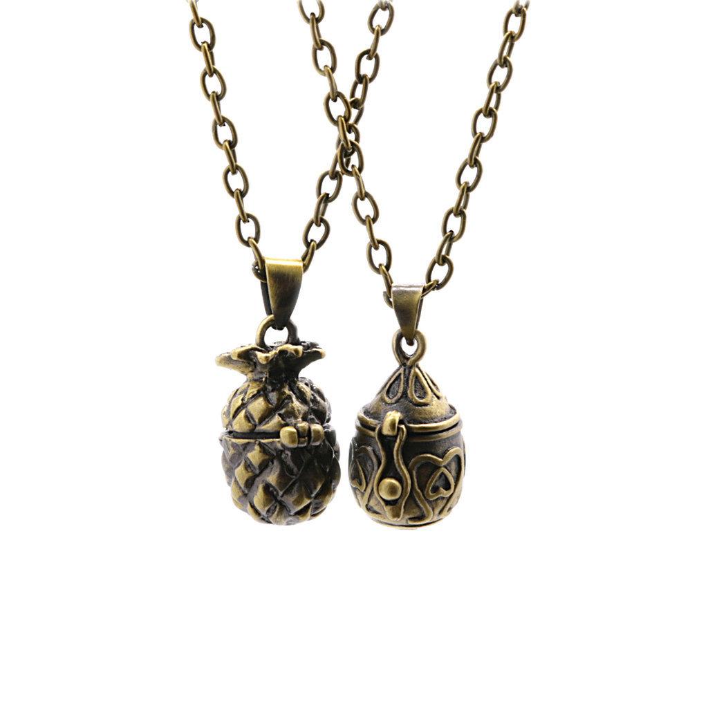 Latão aberto oco armazenamento Colar pingente memorial bronze gota d'água abacaxi joia caixa gawu