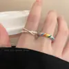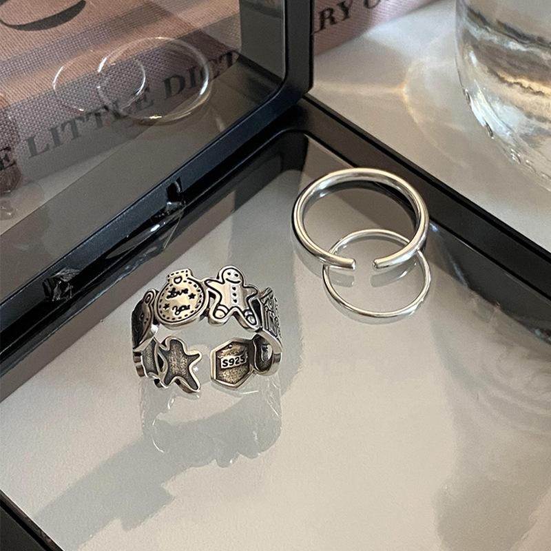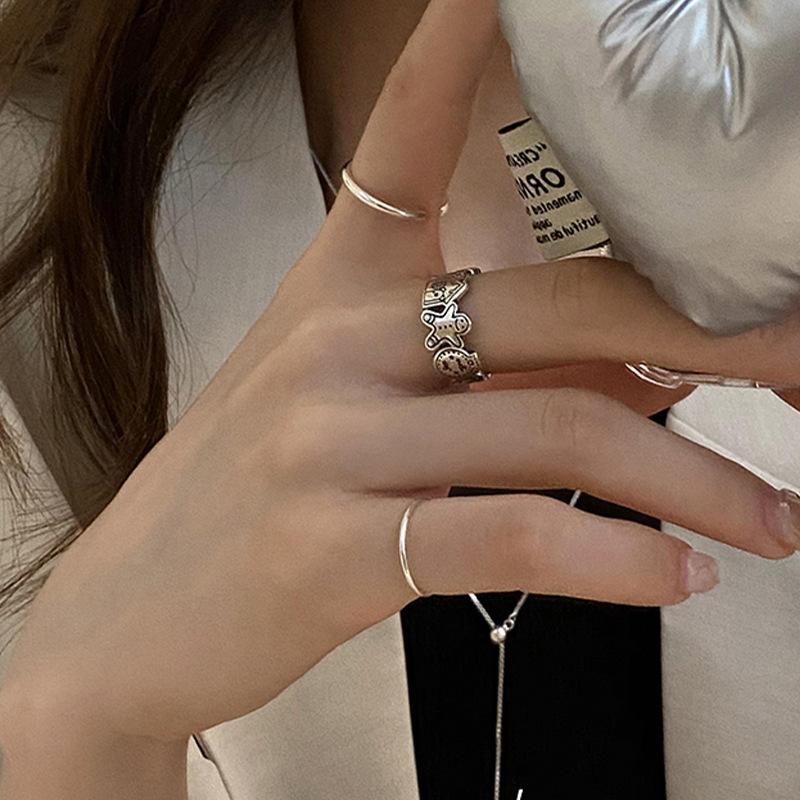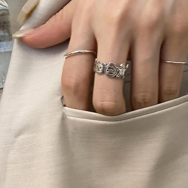 Anel Prata Personagem de Desenho Animado Coreano para Mulheres, Design de Nicho Estilo Ins, Anel de Aliança Liso Minimalista Moderno e Único