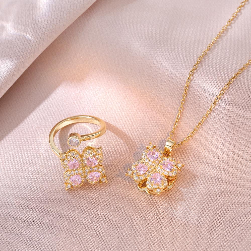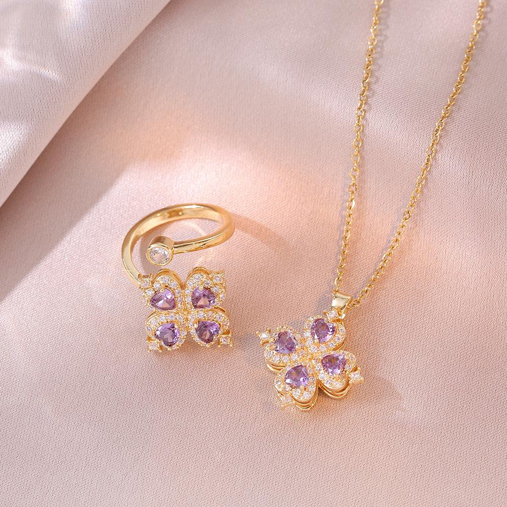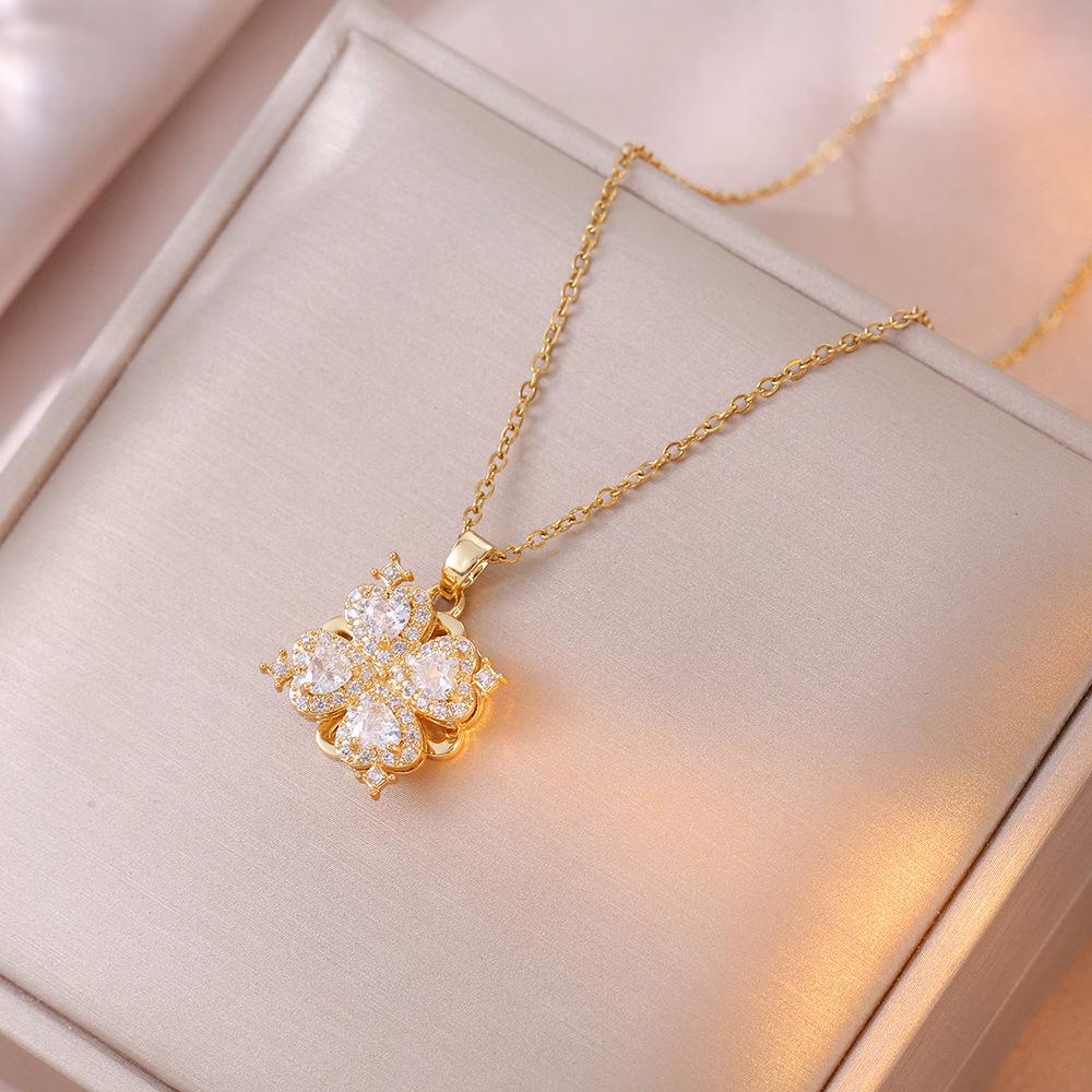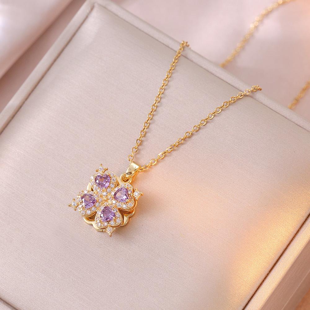 Colar Feminino Estilo Japonês-Coreano Estrela Colar de Amor Masculino Terno de Zircônia Anel de Coração Rotativo Transversal Corrente de Clavícula Micro-incrustada