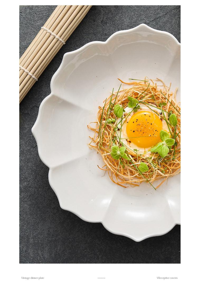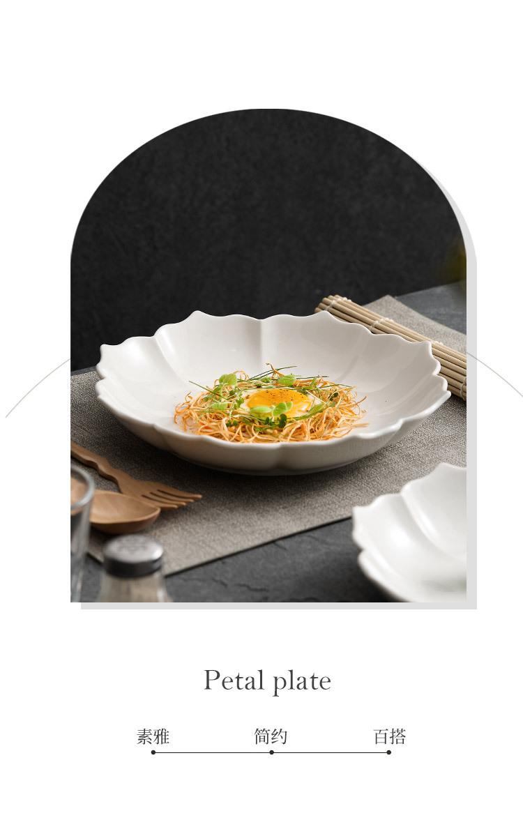 Prato de Cerâmica, Prato Fundo, Prato de Sopa Pétala Doméstico de Alto Nível, Prato de Jantar Simples, Apresentação Criativa, Novo Prato para Salada/Sobremesa