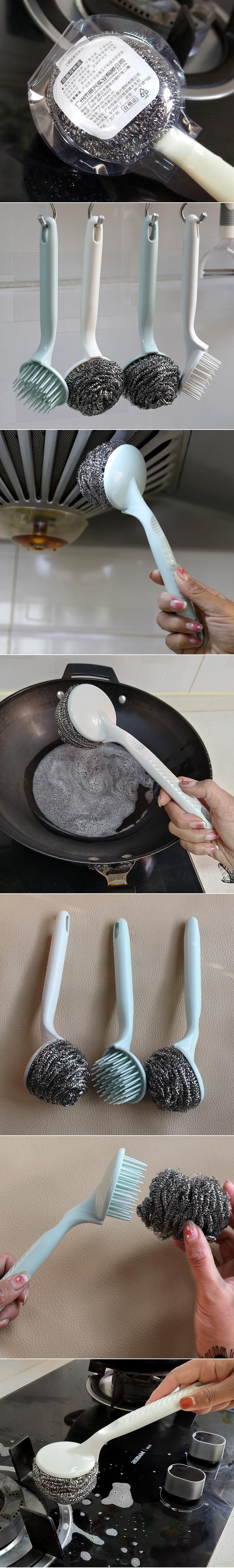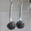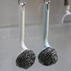 Esponja de Aço para Panelas com Cabo, Escova de Limpeza de Panelas com Cabo Longo e Bola de Aço, Escova para Lavar Louça, Venda Quente