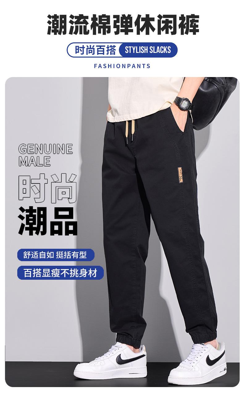 Calças Jogger Casuais de Algodão Stretch Primavera/Verão 2025 Masculinas Slim Fit Casuais Longas