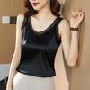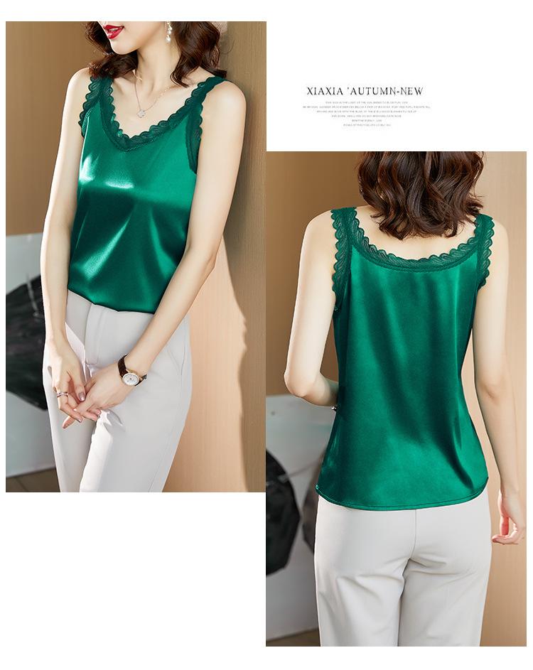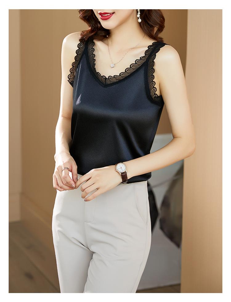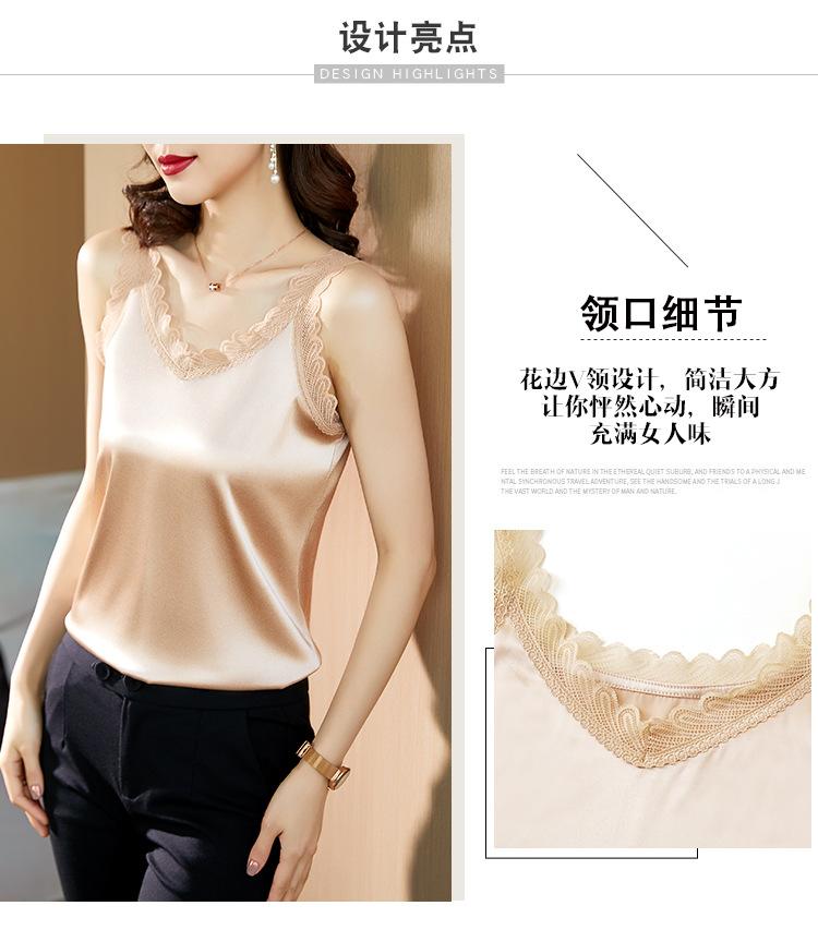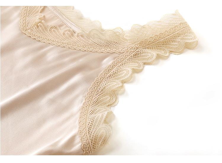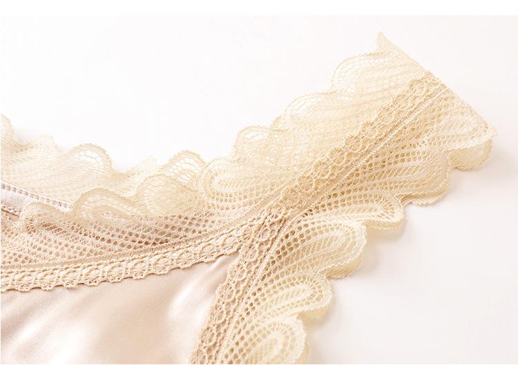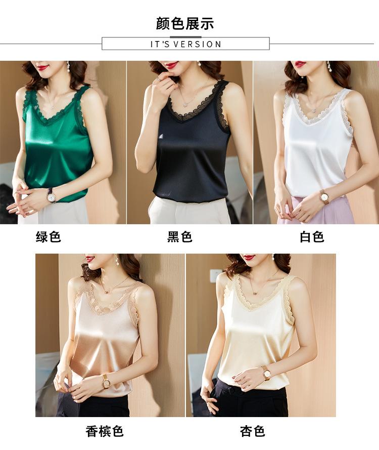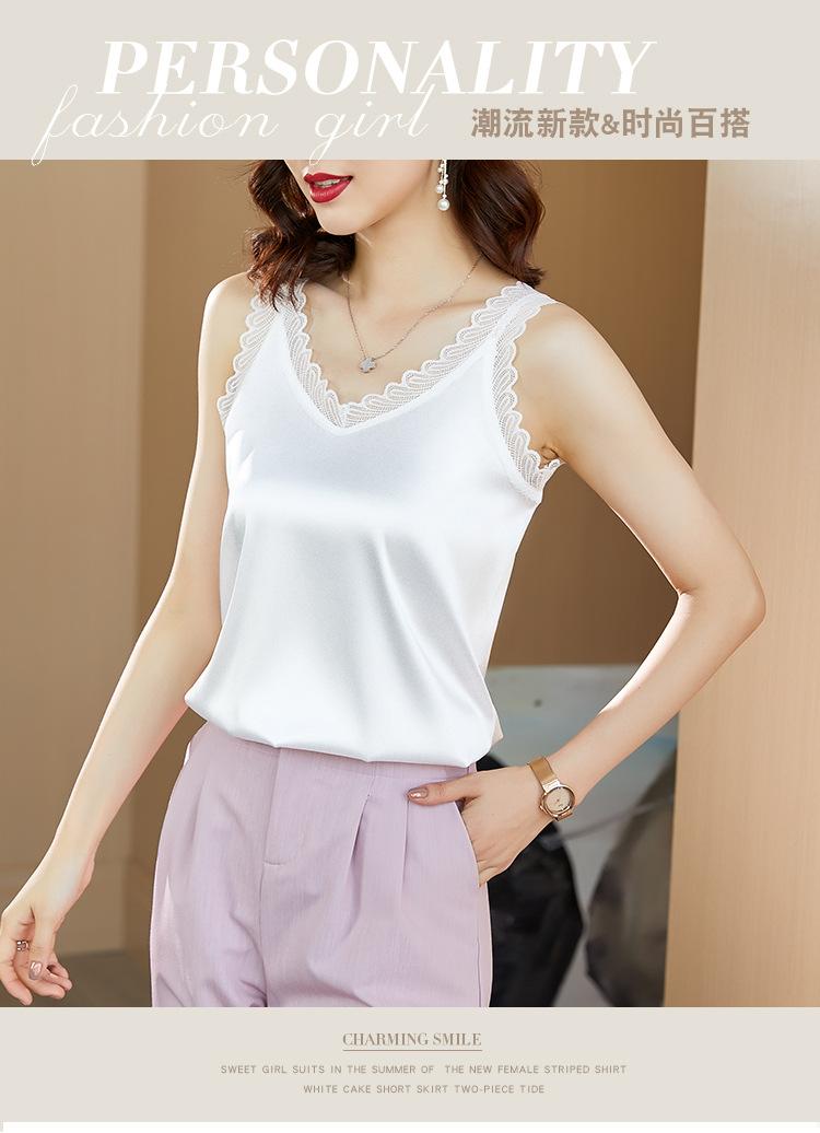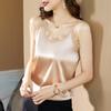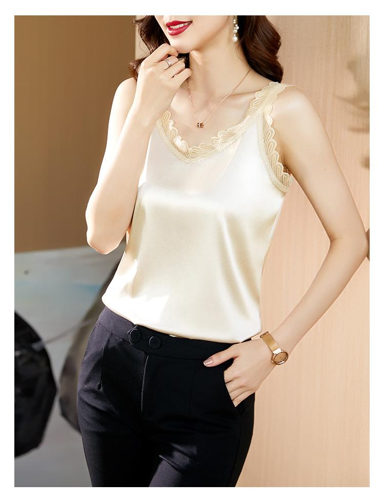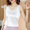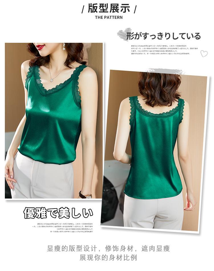 Camisola Feminina de Cetim de Seda Gelo da Mamãe com Lindas Costas Abertas Top de Verão de Seda Roupa Íntima Camiseta Básica de Renda Fashion