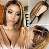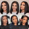 Cabelo liso moderno de comprimento médio, penteado bob famoso na internet, peruca natural curta e fofa, cobertura de cabeça inteira com lace front