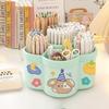 Conjunto organizador de mesa giratório de 360 graus, suporte de papelaria multifuncional fofo com grande capacidade, caneta redonda de PVC e materiais de arte