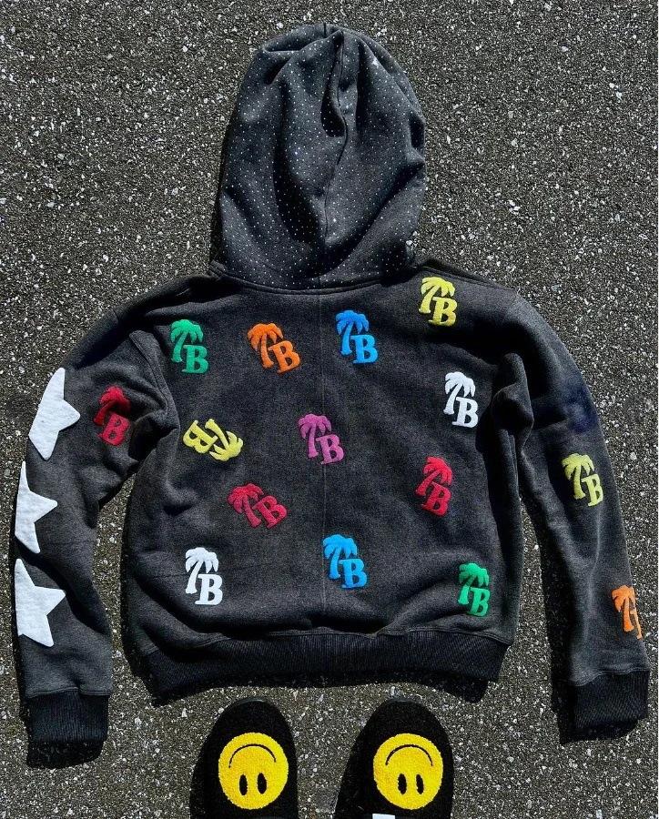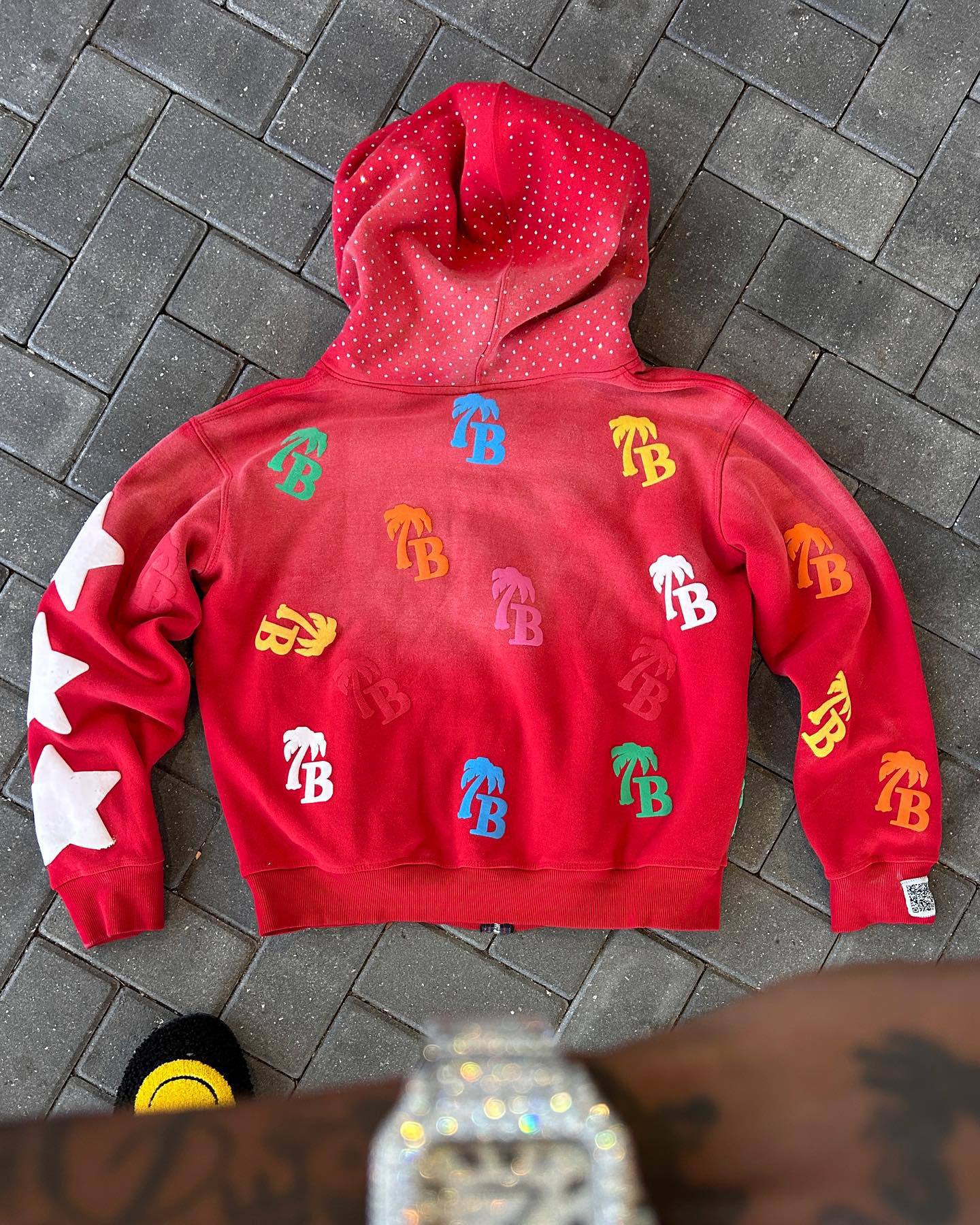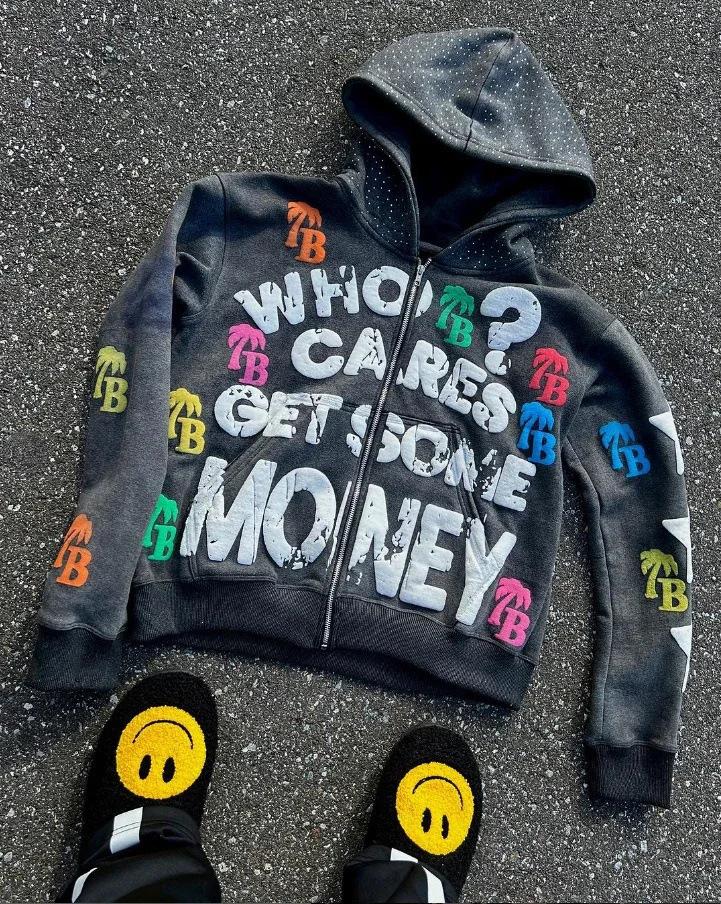 Moletom com Capuz Estilo Hip-Hop Americano de Outono e Inverno com Design Estampado em Espuma, Personalizado, Estilo de Rua, Solto, Cardigã, Moletom para Homens e Mulheres