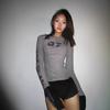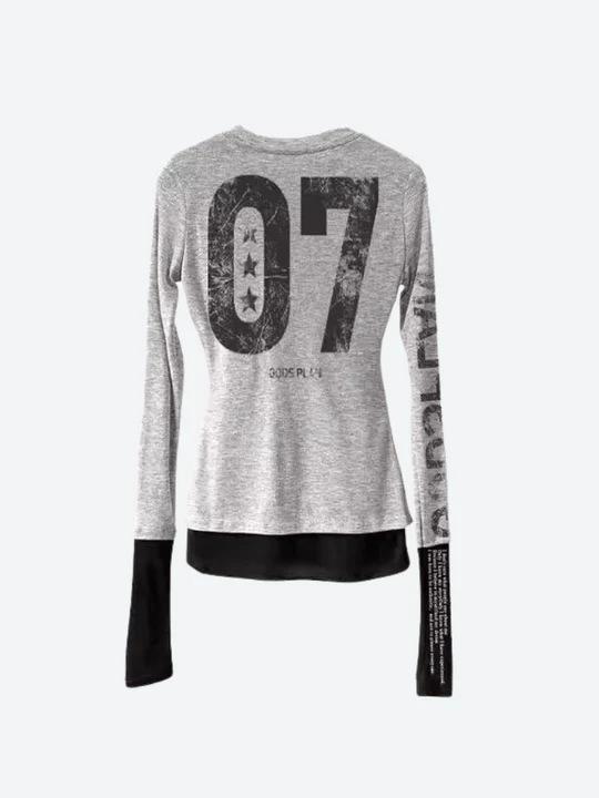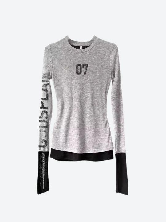 Top Vintage Trendy de Gola Redonda e Manga Longa com Estampa Digital e Mangas Color-Block, Camiseta Feminina Versátil e Fashion, Atacado Transfronteiriço