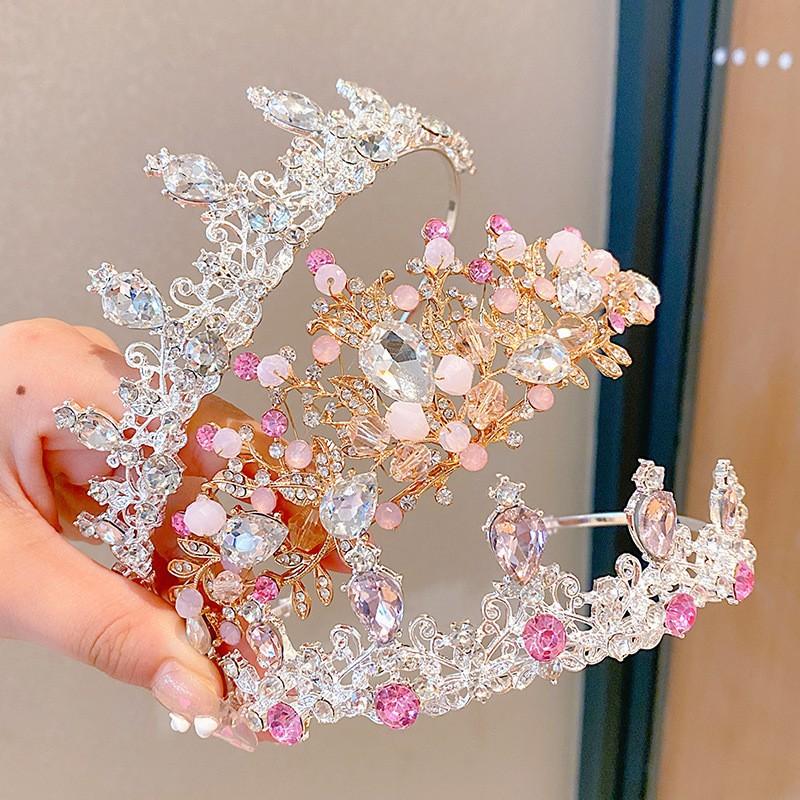 Coroa de Aniversário Adorno de Cabeça Princesa Estilo Coreano Sofisticado Coroa Vestido de Noiva Meninas Presilha de Cabelo Faixa de Cabelo Strass Ornamento de Cabelo Tiara