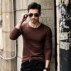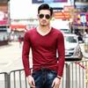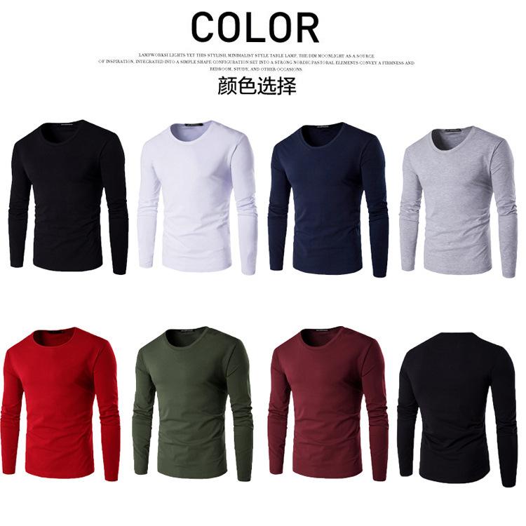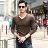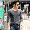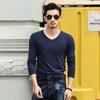 Comércio Exterior Outono e Inverno Nova Cor Camiseta Masculina Manga Longa Gola Redonda Ajuste Slim Camiseta Base Top Estudante Roupas de Outono Rede Decote V