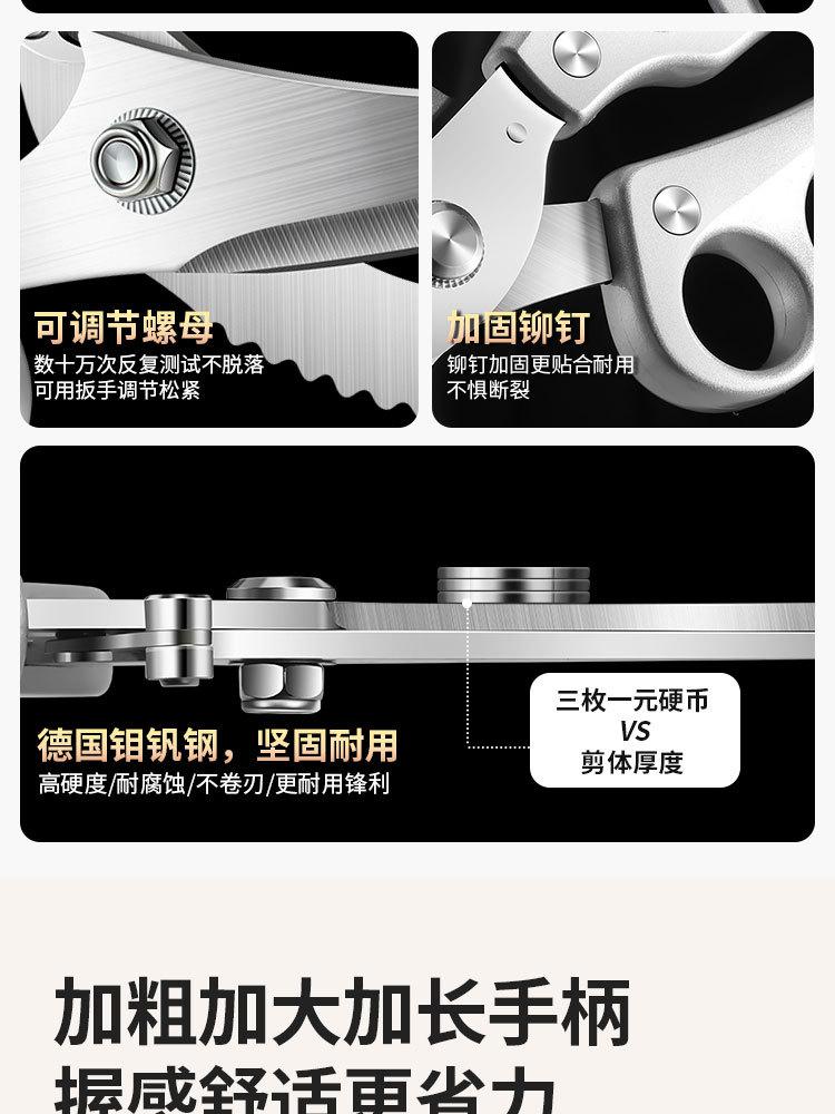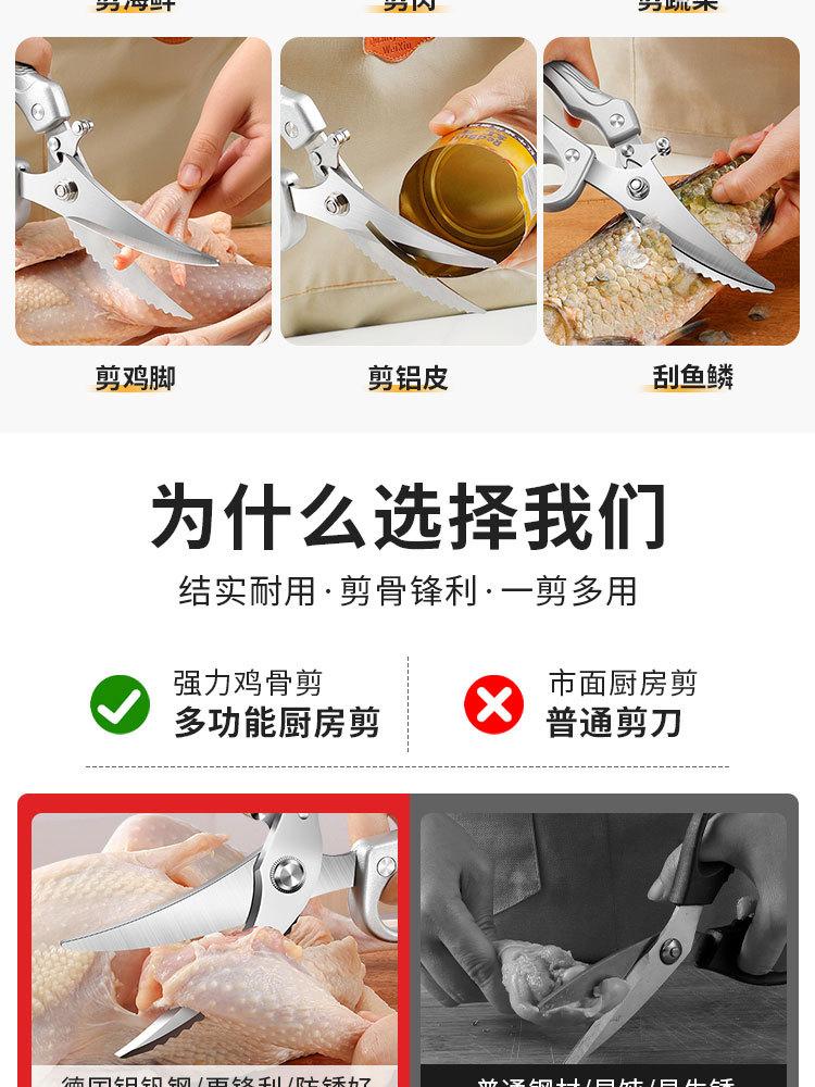 Tesoura Multifuncional de Cozinha Nova Cross-Border 2025 Aço Inoxidável Alemão de Grau Alimentício Tesoura para Cortar Osso de Frango