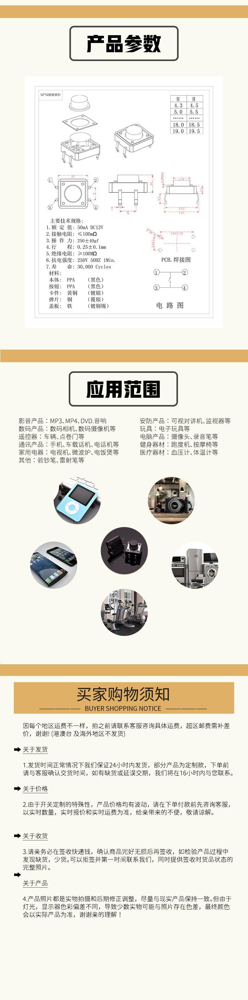 Para micro-movimento de botão chave 12*14 vertical 4 pinos chave tátil pino/patch chave tátil de alavanca longa