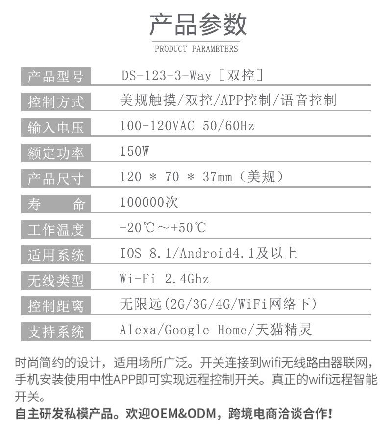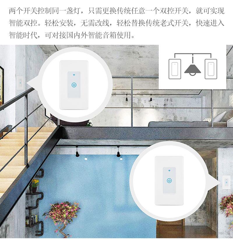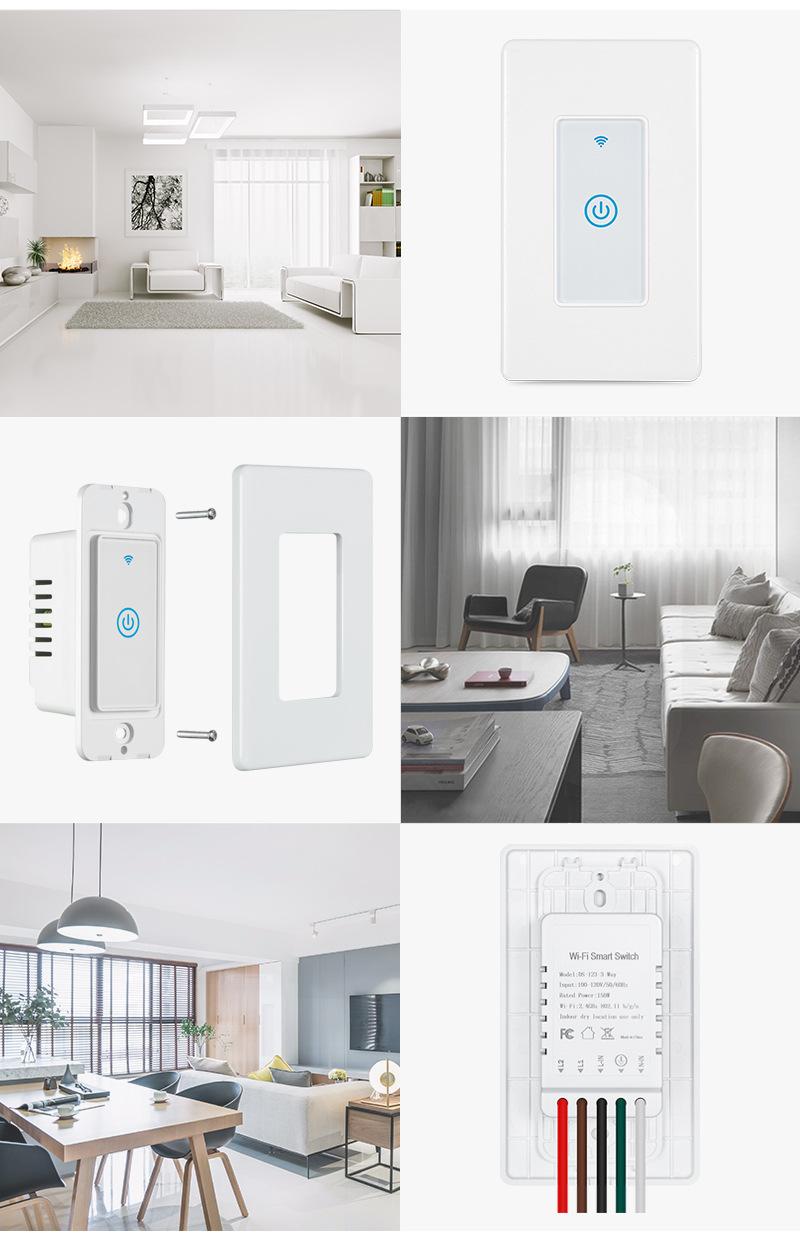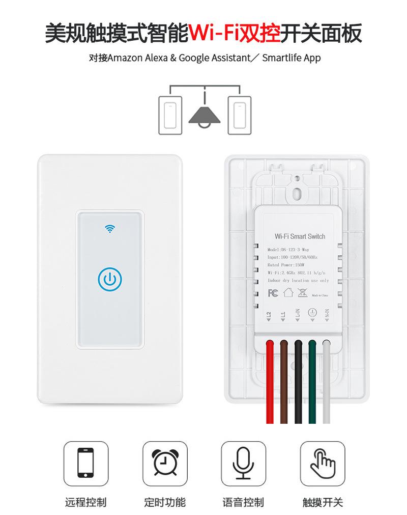 Interruptor de Toque de Controle Duplo, Interruptor Inteligente, Interruptor de Controle Duplo Padrão Americano, Interruptor de 3 Vias de Controle Duplo Tuya