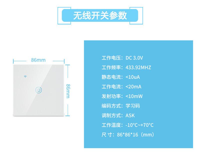 Interruptor de toque sem fio fiação livre RF 433 interruptor de painel de controle remoto