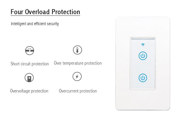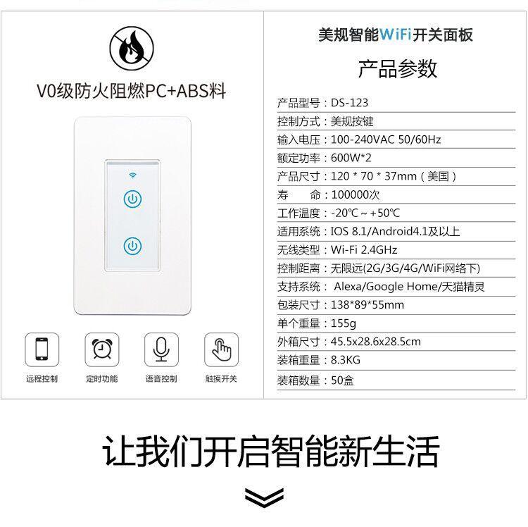 Interruptor Inteligente interruptor de toque interruptor wifi padrão americano 2 vias padrão americano interruptor de parede controle por celular
