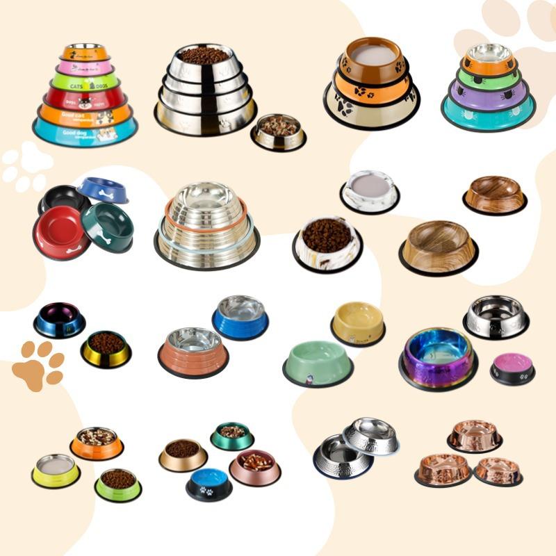 Natural color dog pot, Silk screen spray paint two-color, Stainless steel footprint, Cat head, Spray paint dec...