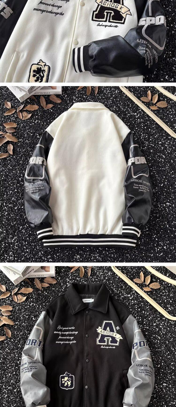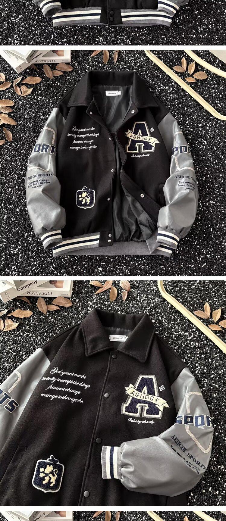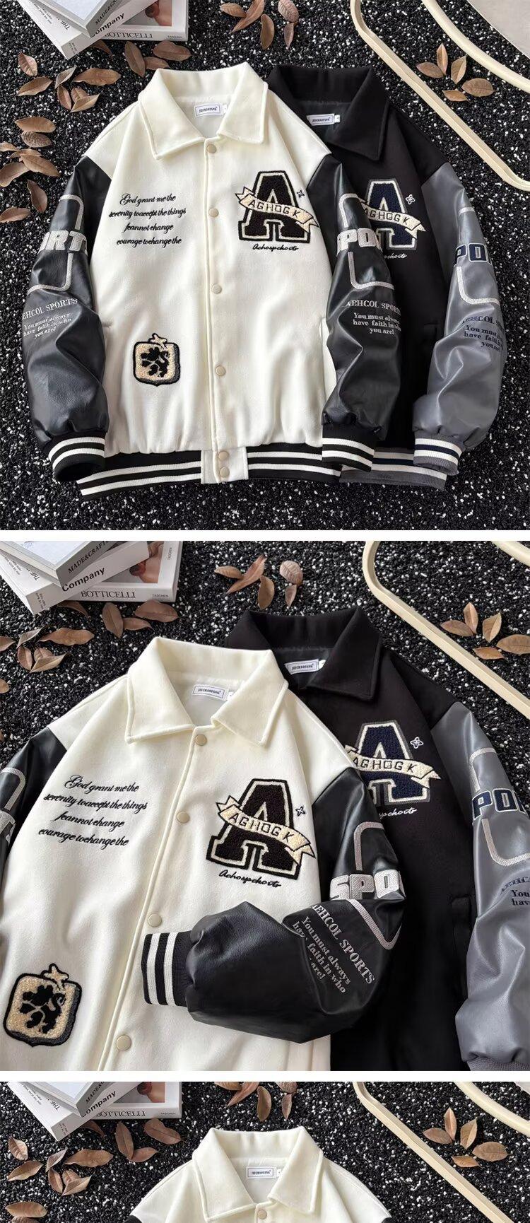 Jaqueta de Beisebol Vintage para Homens, Outono Novo Solto Estilo Americano Bordado High Street Jaqueta Esportiva, Casaco Patchwork para Casal, Tendência
