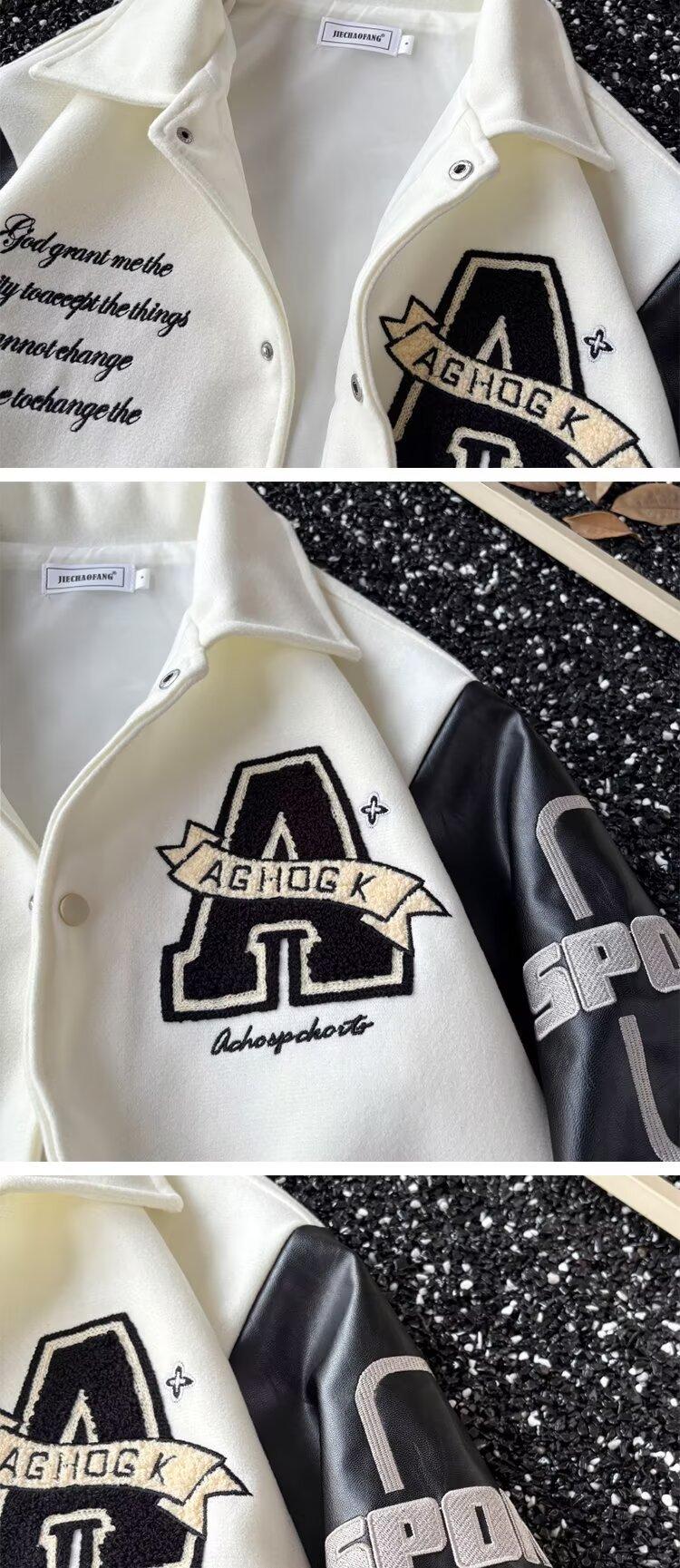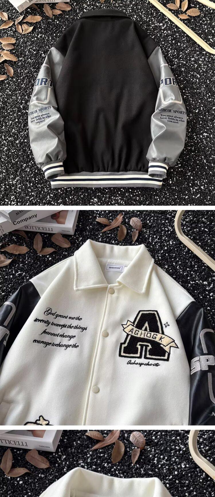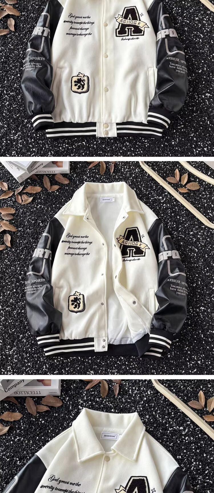 Jaqueta de Beisebol Vintage para Homens, Outono Novo Solto Estilo Americano Bordado High Street Jaqueta Esportiva, Casaco Patchwork para Casal, Tendência
