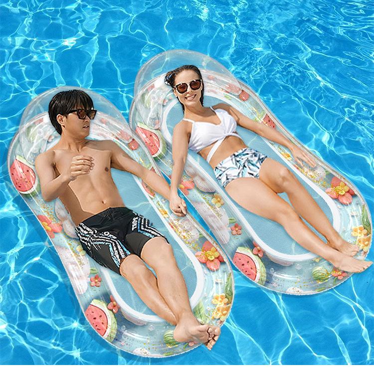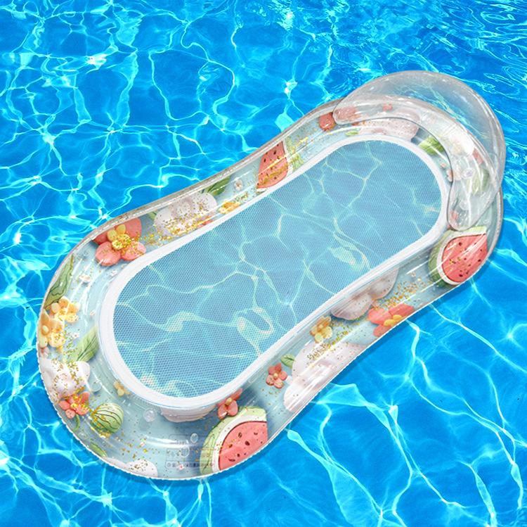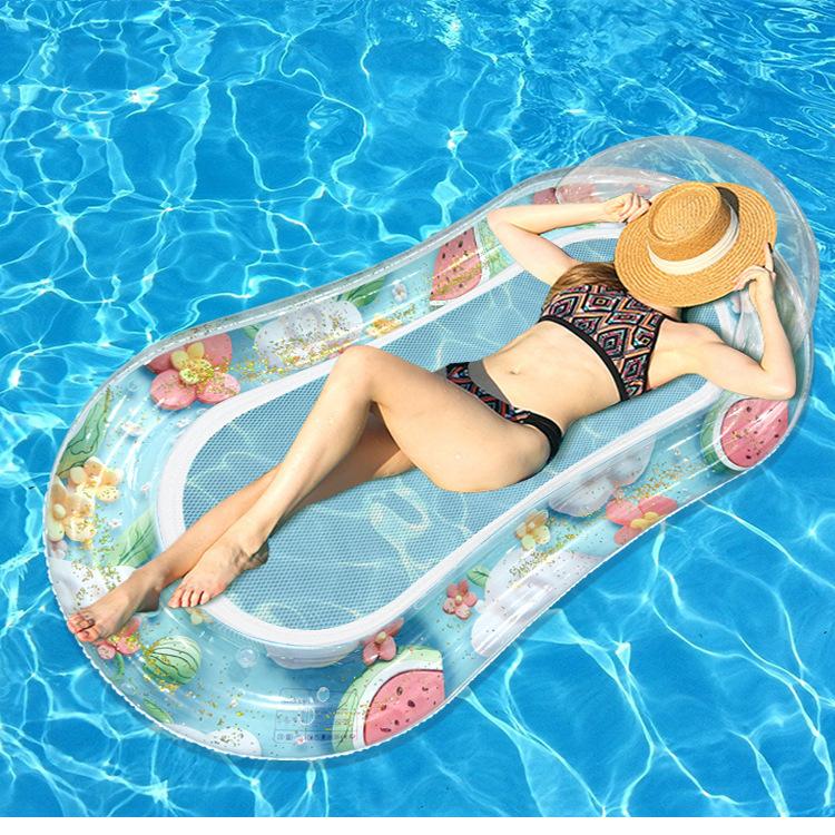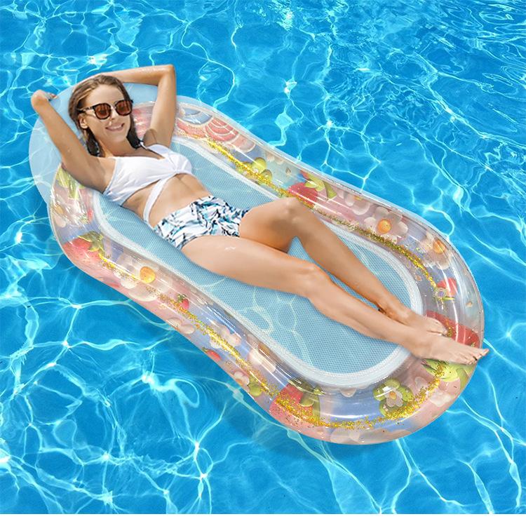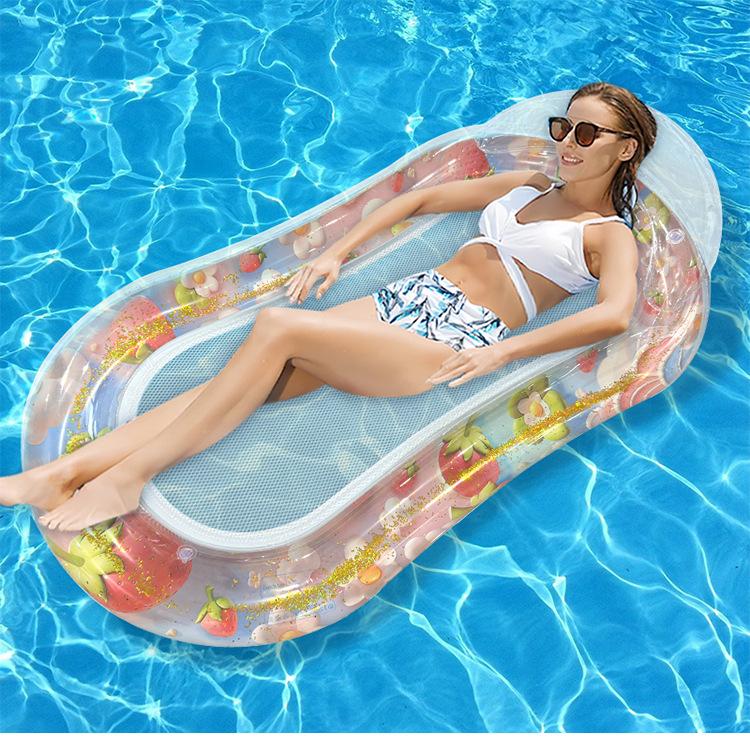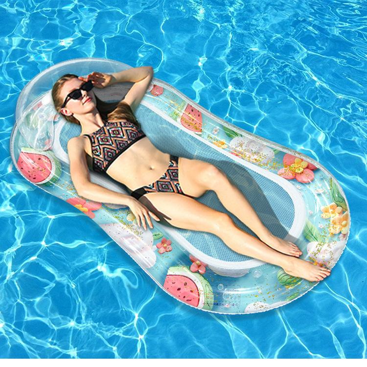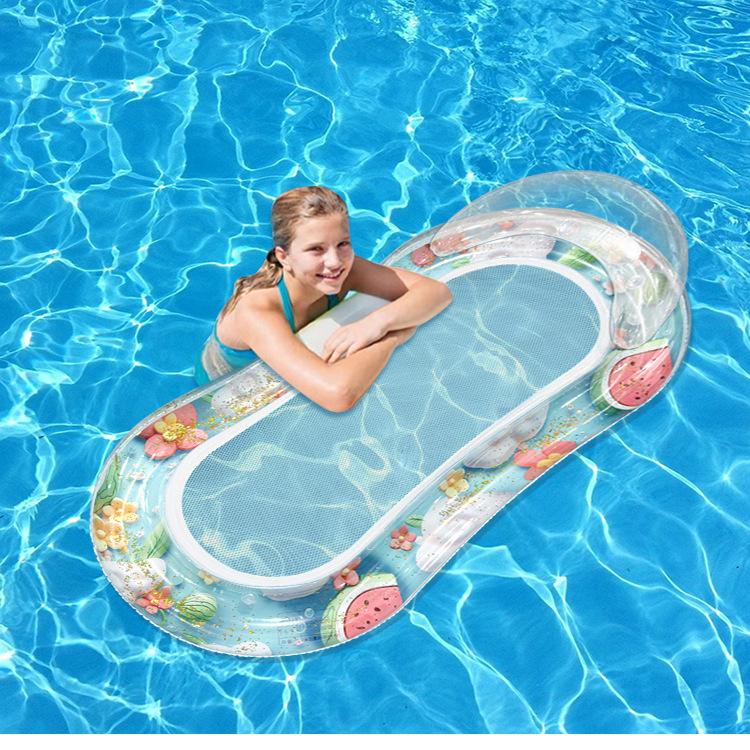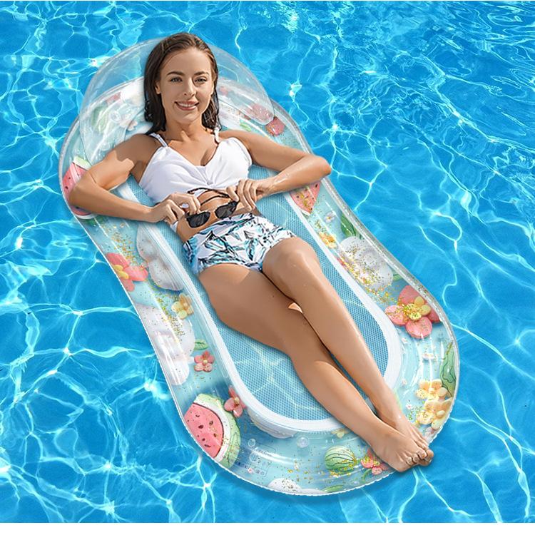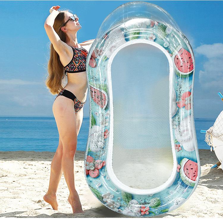 Nova cama flutuante de PVC com lantejoulas para proteção ambiental de esportes aquáticos transfronteiriços com travesseiro espreguiçadeira flutuante individual linha flutuante inflável