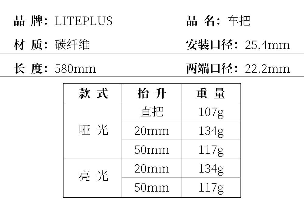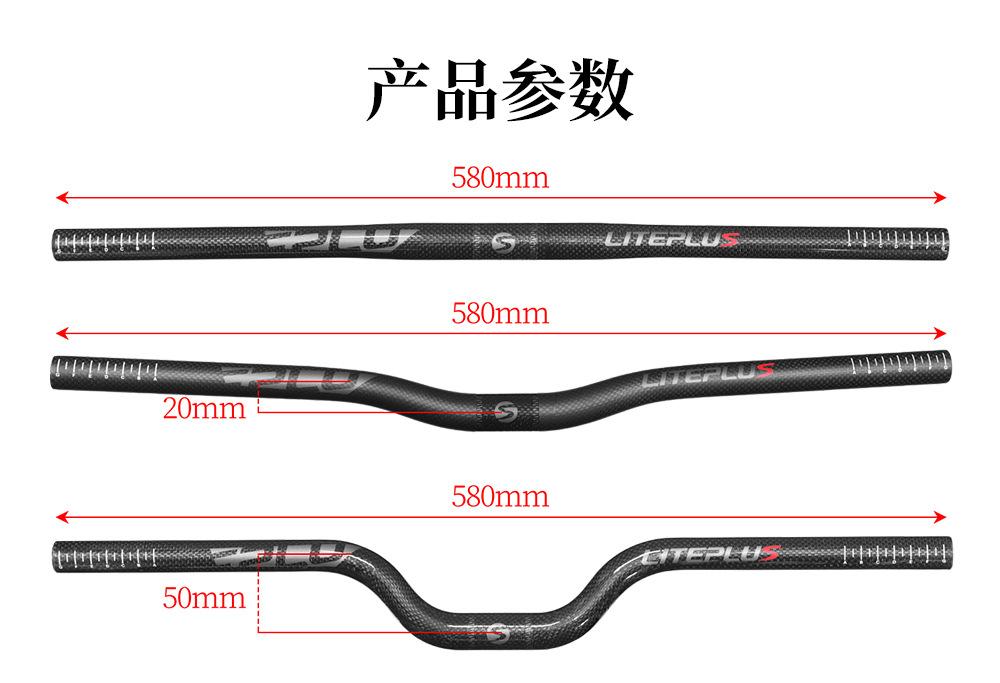 Guidão de Fibra de Carbono para Bicicleta Dobrável Liteplus Ultraleve 25.4*580 Calibre Guidão Horizontal BMX Guidão Modificado