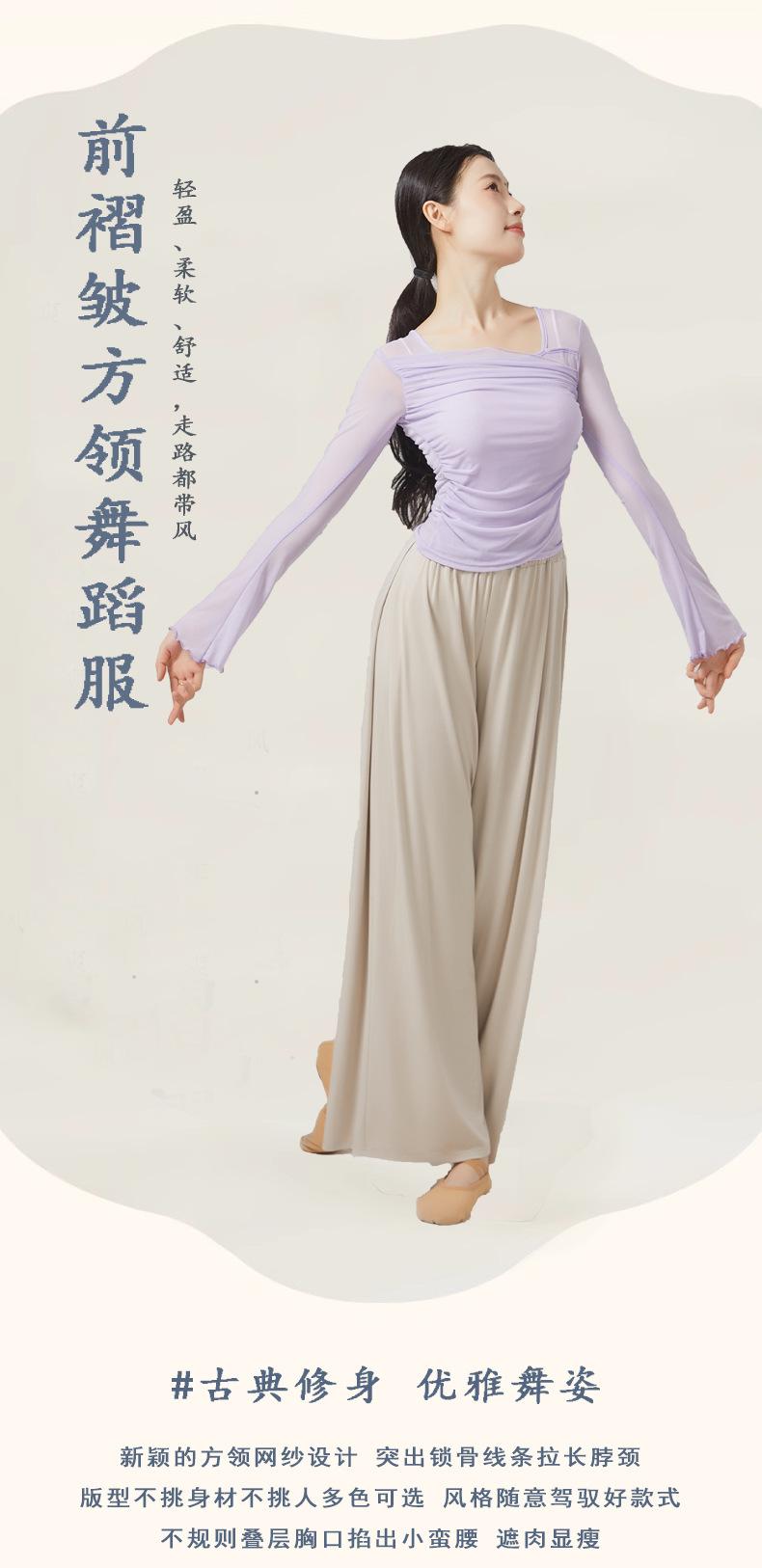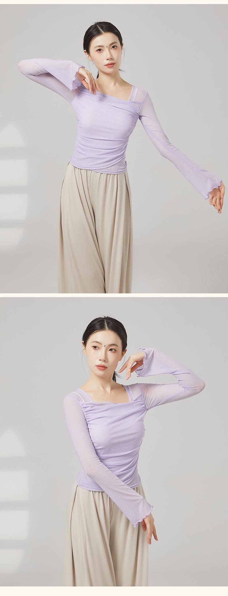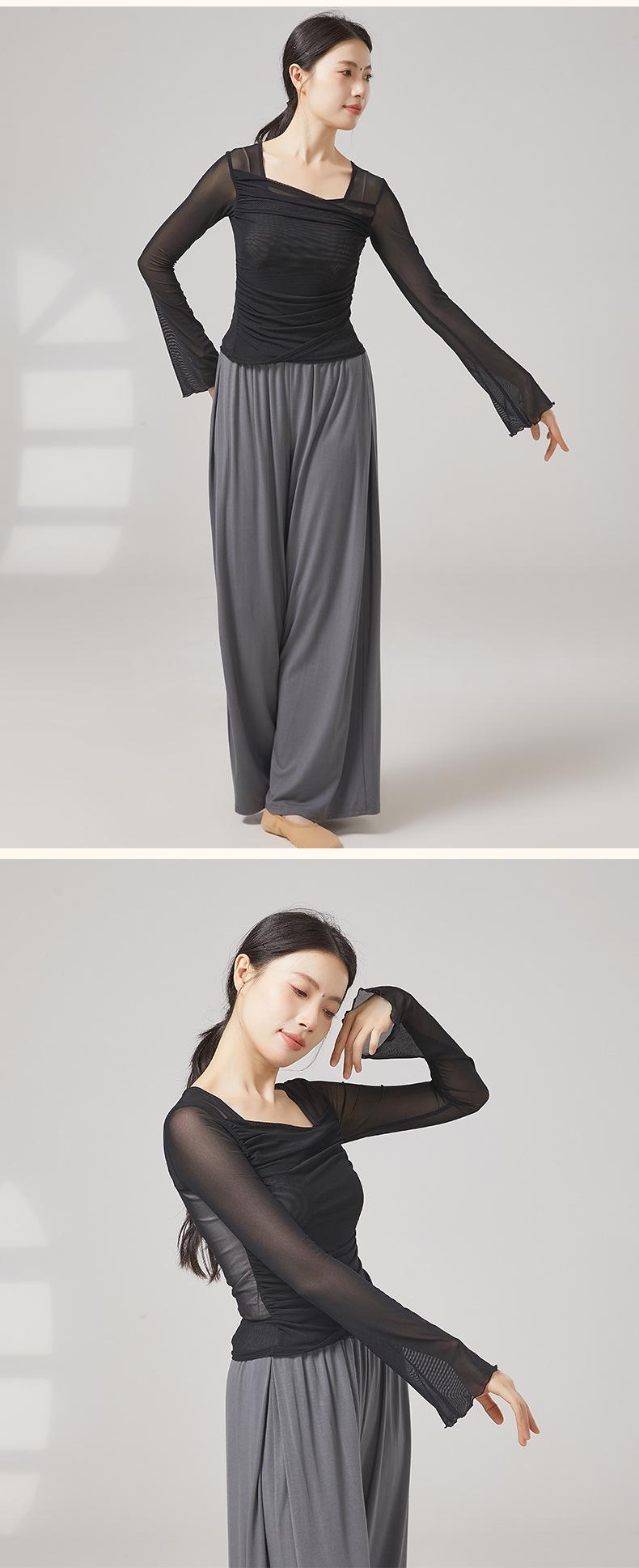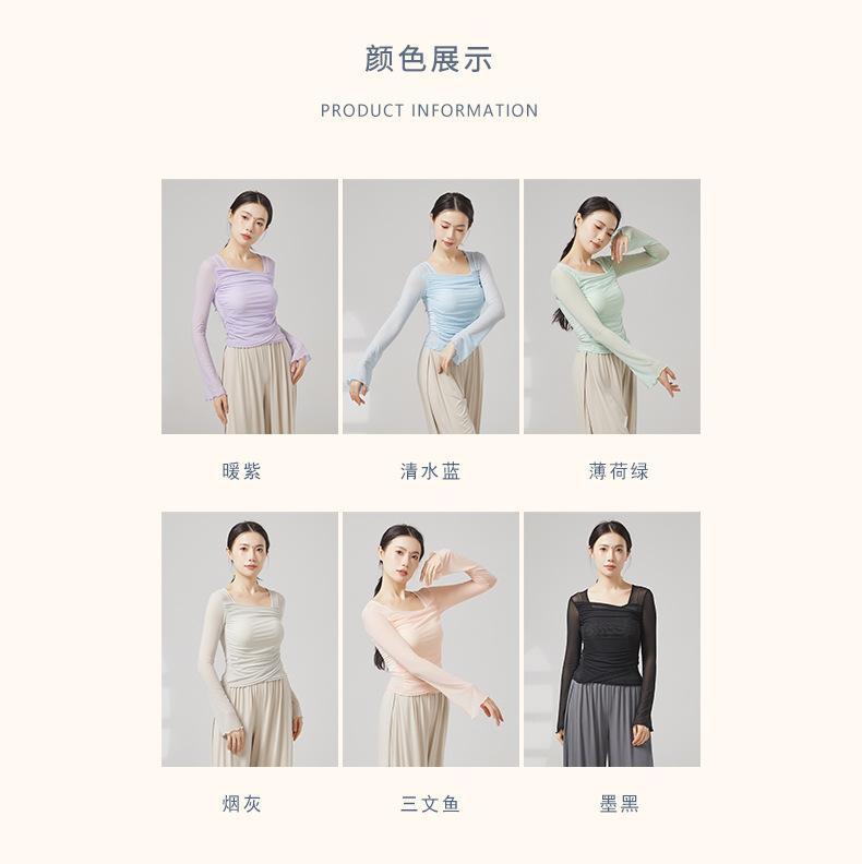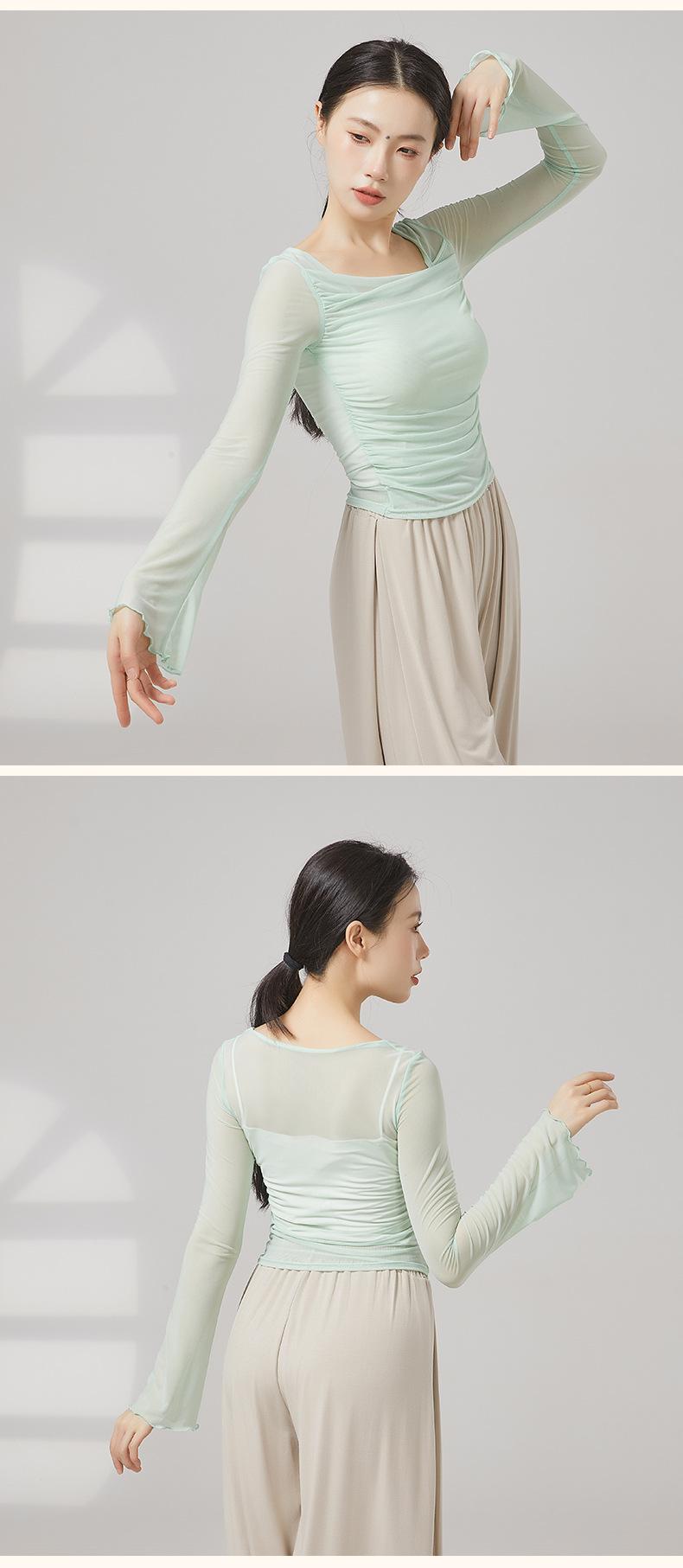 Top de Dança em Tela Verão Roupas de Prática de Dança Feminina Dança Moderna Dança Clássica Manga Dedo Plissado Estudantes de Dança