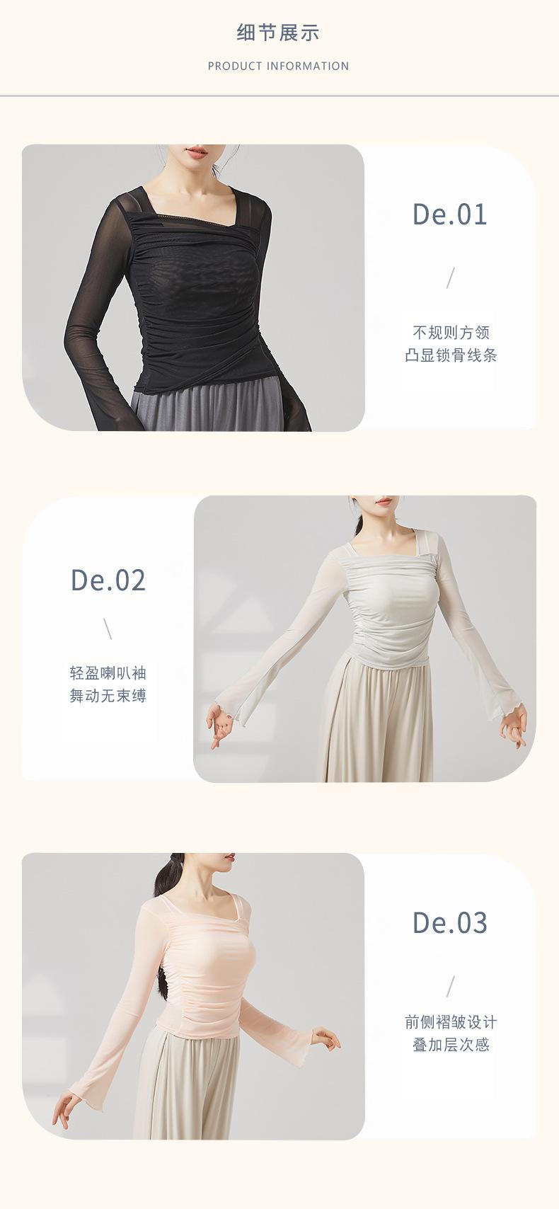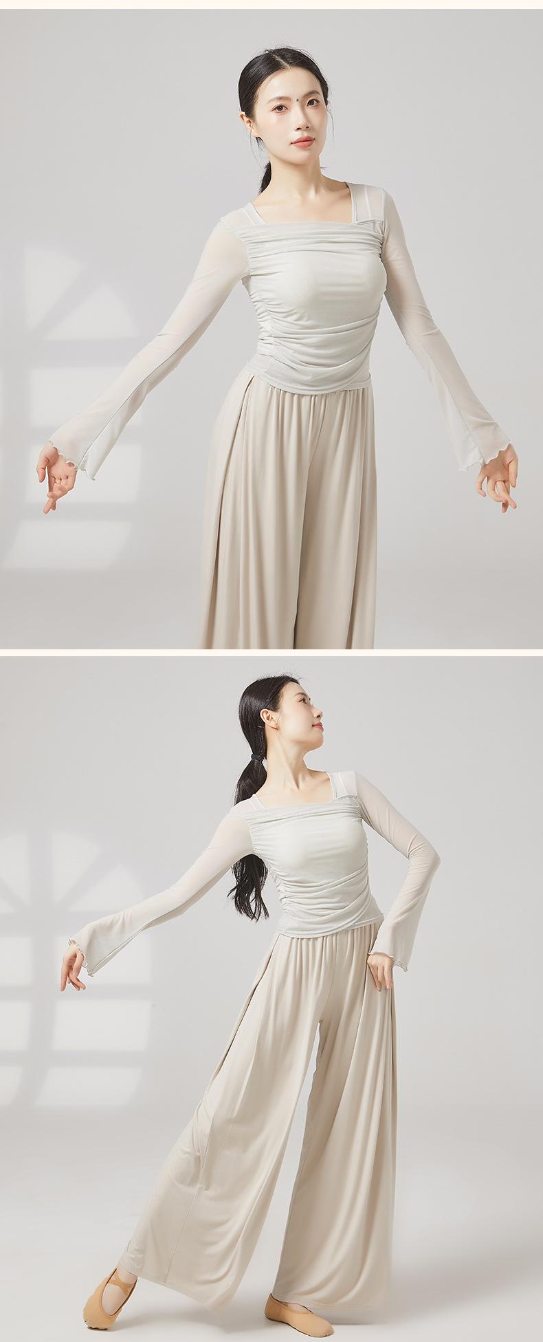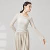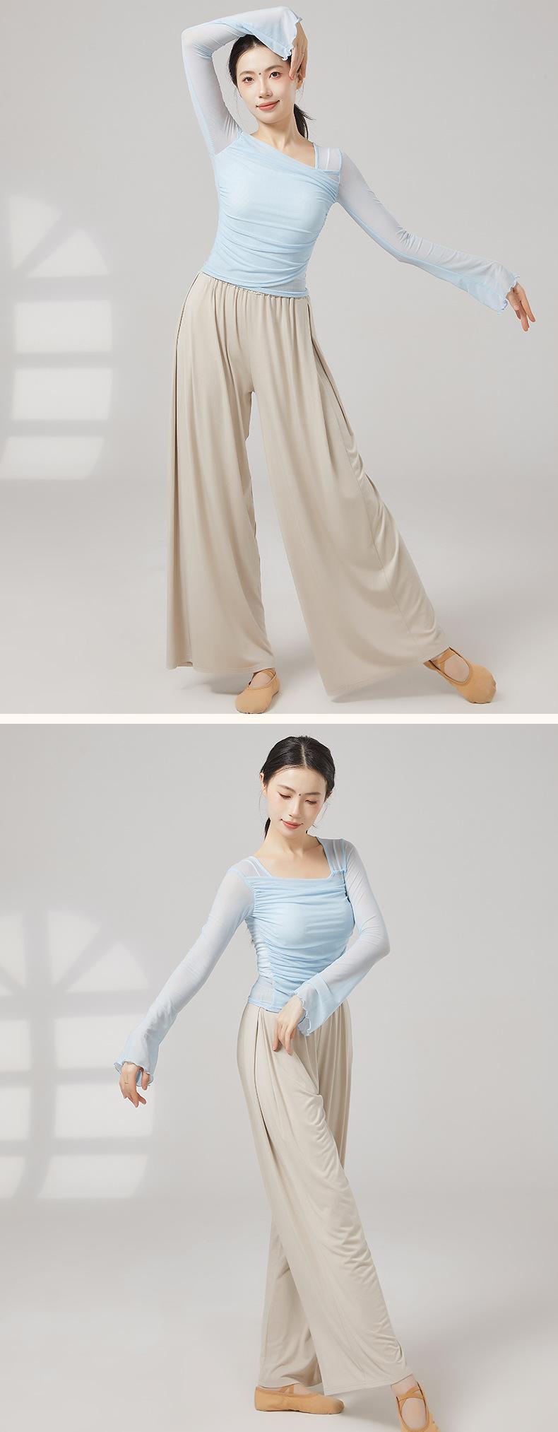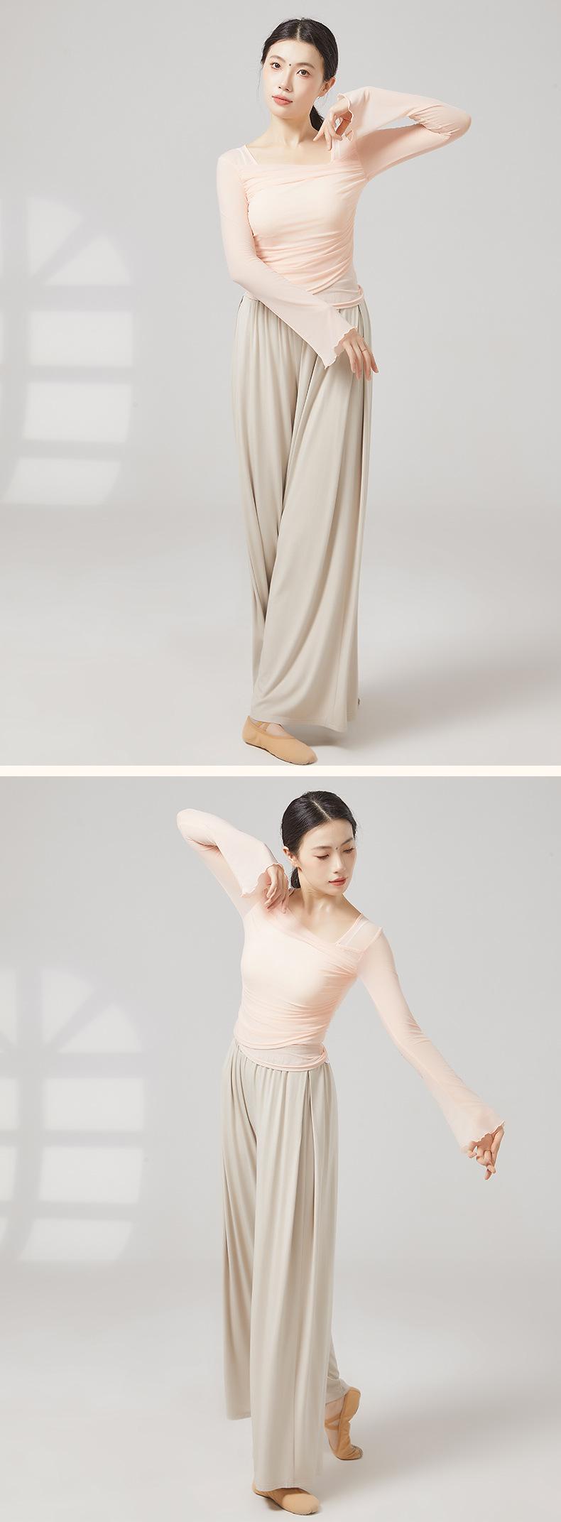 Top de Dança em Tela Verão Roupas de Prática de Dança Feminina Dança Moderna Dança Clássica Manga Dedo Plissado Estudantes de Dança