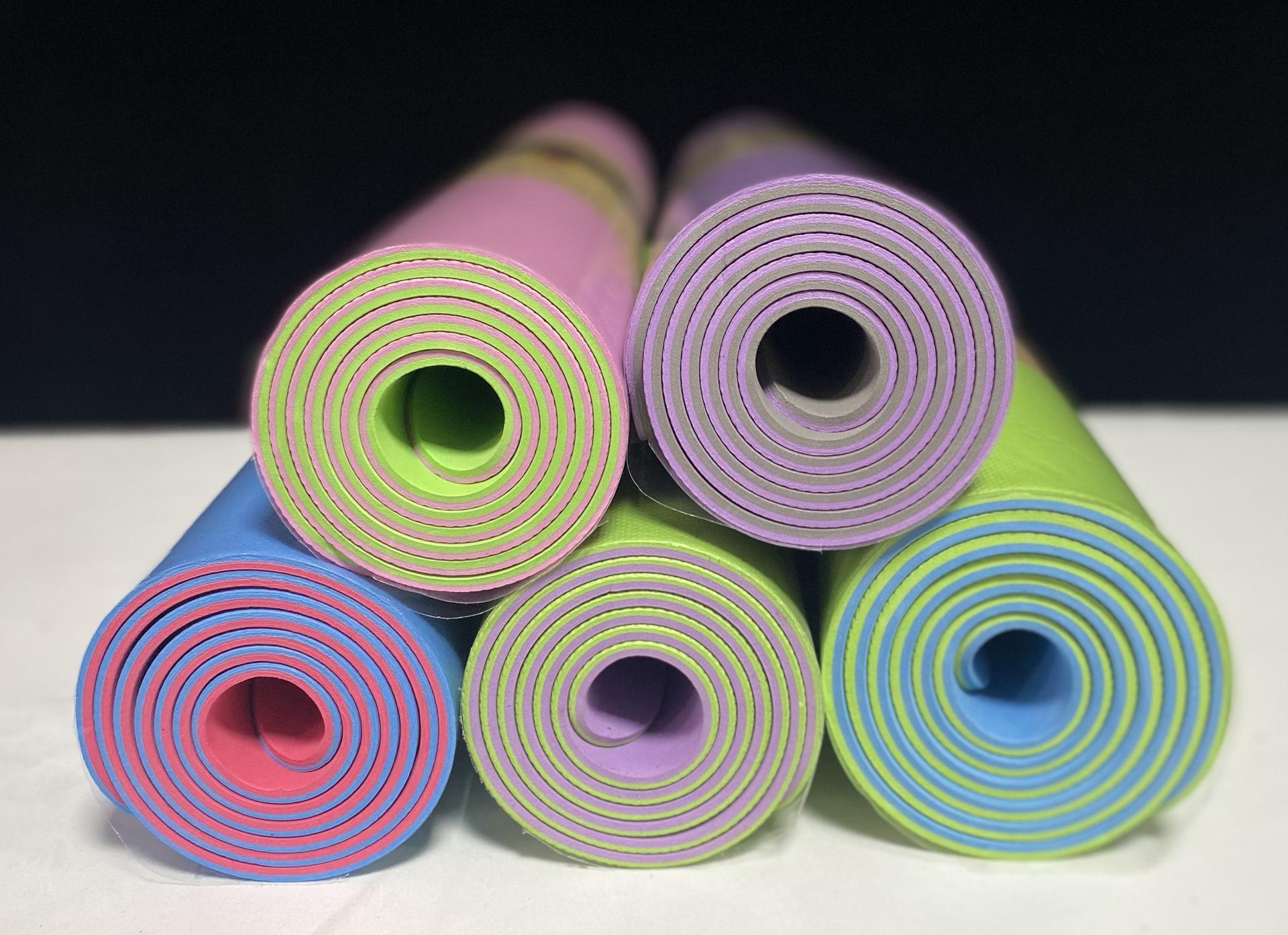 Tapete de Yoga Tpe Bicolor Espessado Antiderrapante Feminino Alargado Tapete de Fitness à Prova de Som Corda de Pular Tapete de Chão Tapete de Dança Doméstico Atacado