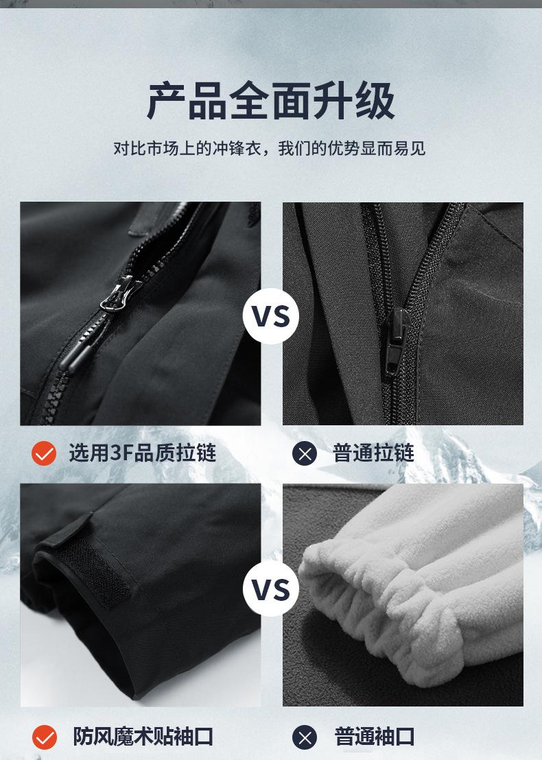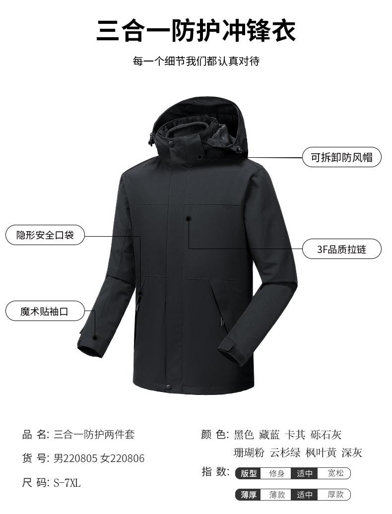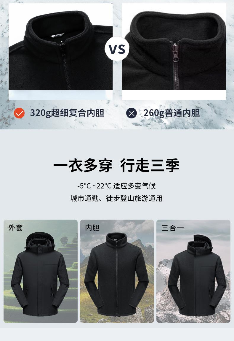 Jaqueta Três-Em-Um para Homens e Mulheres, Jaqueta de Montanhismo Impermeável e à Prova de Vento, Forro de Lã, Roupa de Trabalho de Duas Peças, Logotipo Imprimível