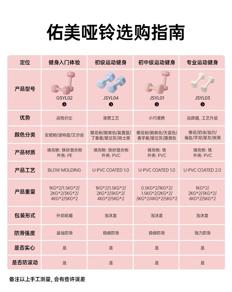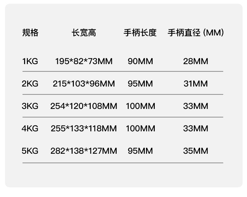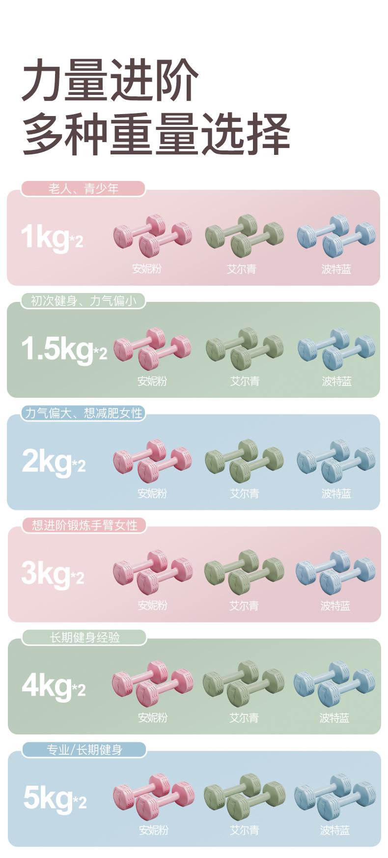 Dumbbells 2kg (1kg*2 pieces), Dumbbell 4kg (2kg*2 pieces), Dumbbell 6kg (3kg*2 pieces), Dumbbell 3kg (1.5kg*2 pieces)