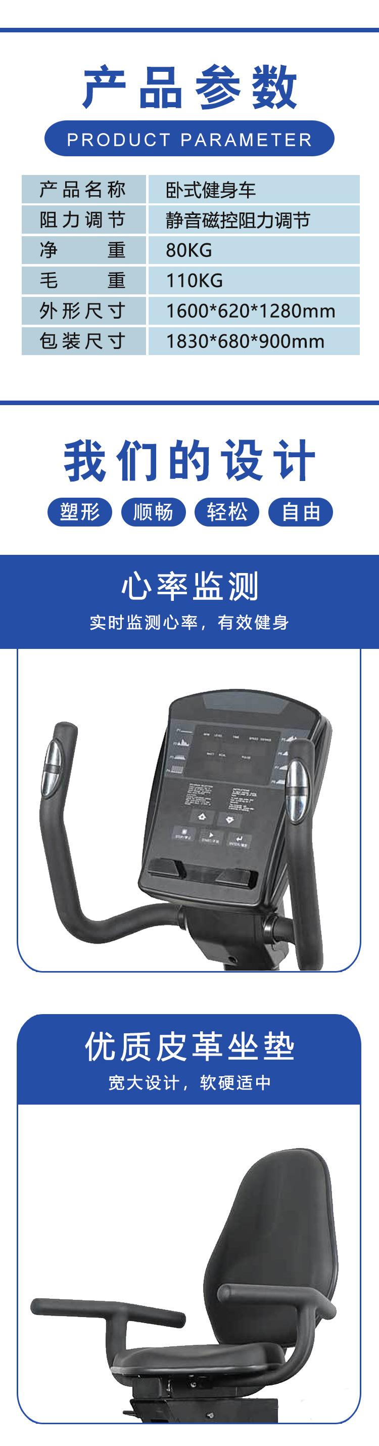 Bicicleta Horizontal para Exercícios de Fitness Indoor Comercial com Controle Magnético Bicicleta para Exercícios de Reabilitação Esportiva Bicicleta Doméstica com Controle Magnético