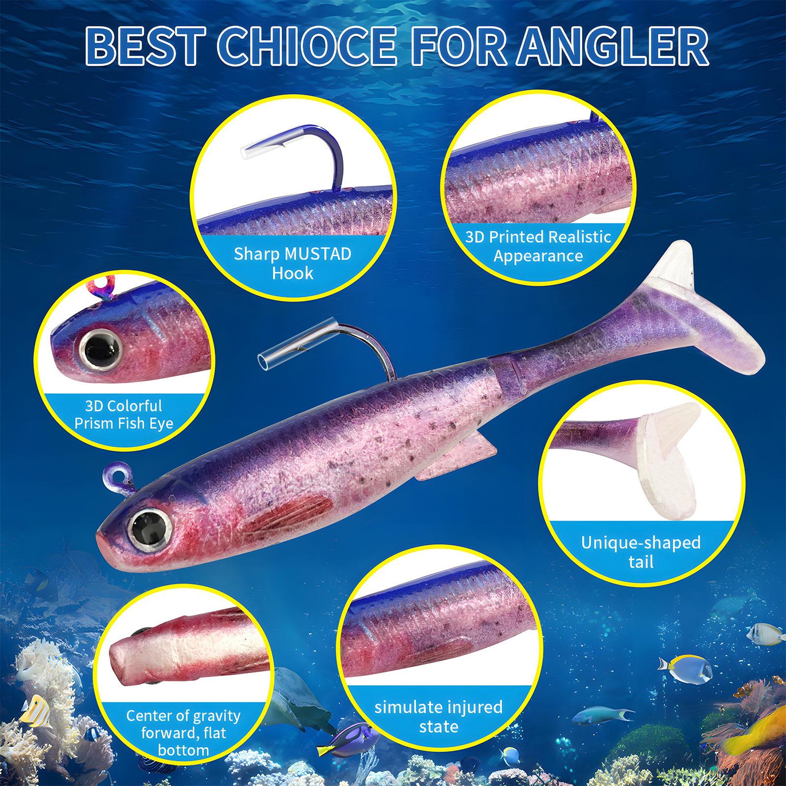 Isca Mole Luya Jig Head Anzol Isca para Robalo Isca Biônica Cauda T Impressa em 3D Anzol Simples Isca Pesca Selvagem Peixe de Chumbo