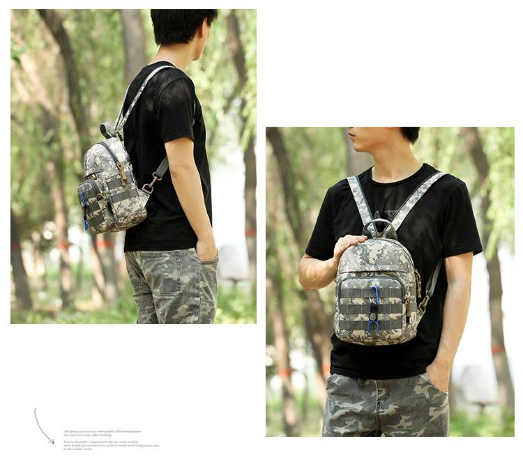 Mochila Pequena Multifuncional Masculina Esportiva ao Ar Livre Viagem Camuflada Bolsa de Peito Casual Camping Transversal Ombro Estudante