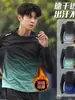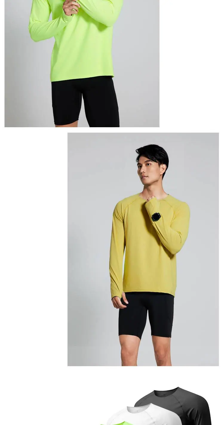 Camiseta de Treino Gola Careca Antiestática para Corrida de Maratona ao Ar Livre Fitness Esportes Alta Elasticidade Ajuste Slim Secagem Rápida Manga Longa Masculina
