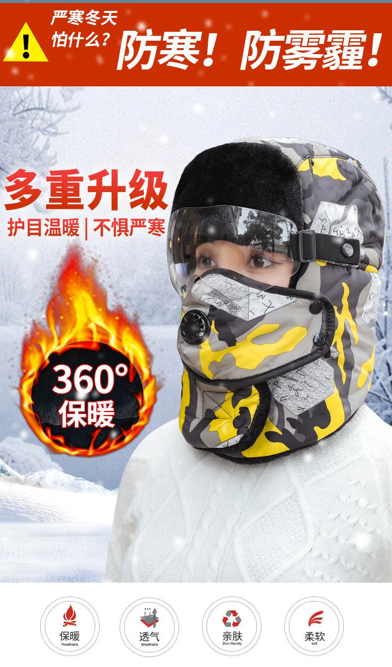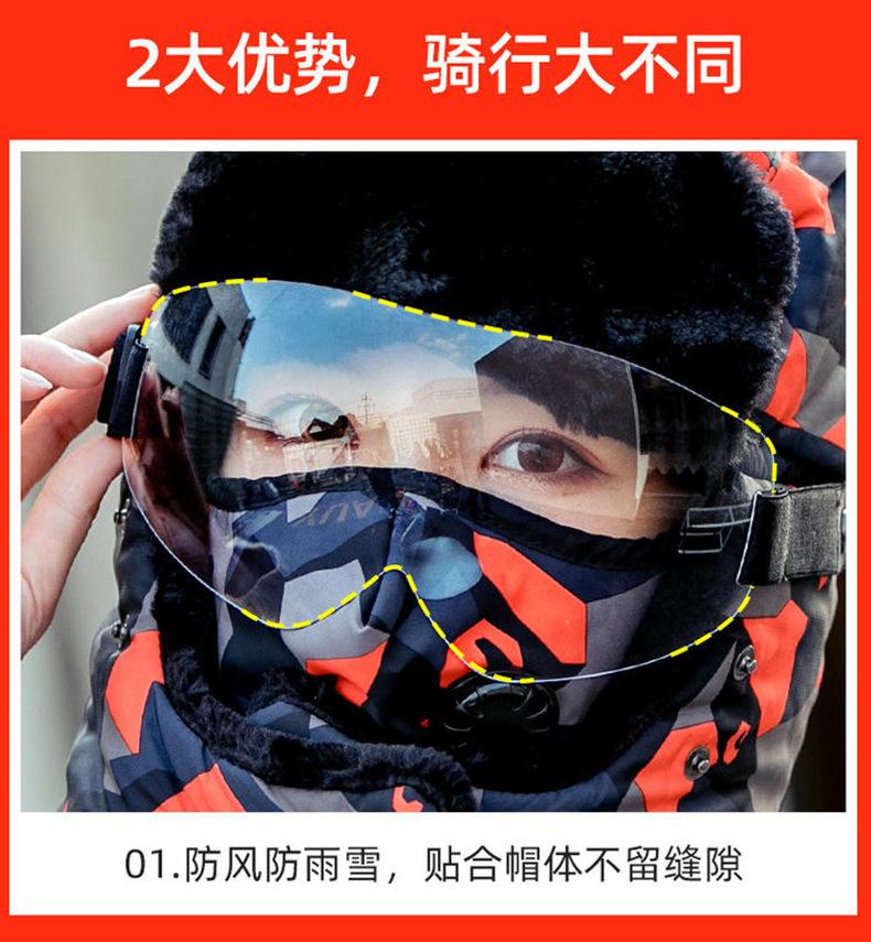 Equipamento de Cabeça para Andar de Moto Elétrica, Andar Quente, Proteção Facial para Esqui, Chapéu Lei Feng, À Prova de Vento, À Prova de Frio, Máscara para Andar Masculina e Feminina