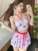Biquíni Coreano Estilo Ins Cor Sólida Sexy Modelador de Uma Peça Biquíni para Seios Pequenos Desejo Puro Traje de Banho para Mulheres Conservador Águas Termais