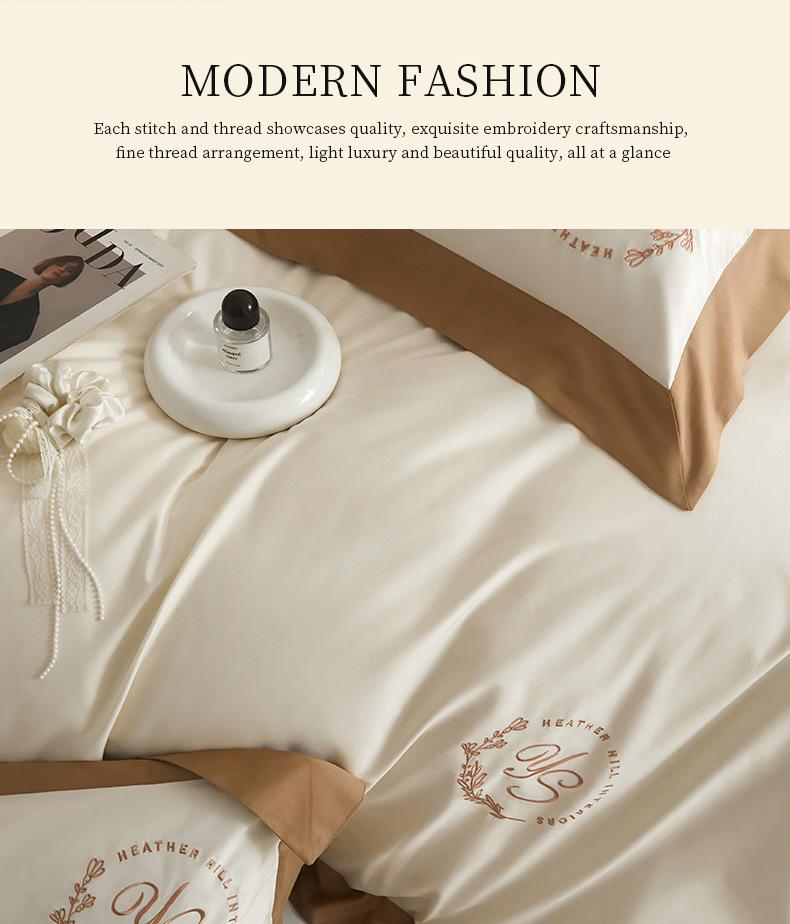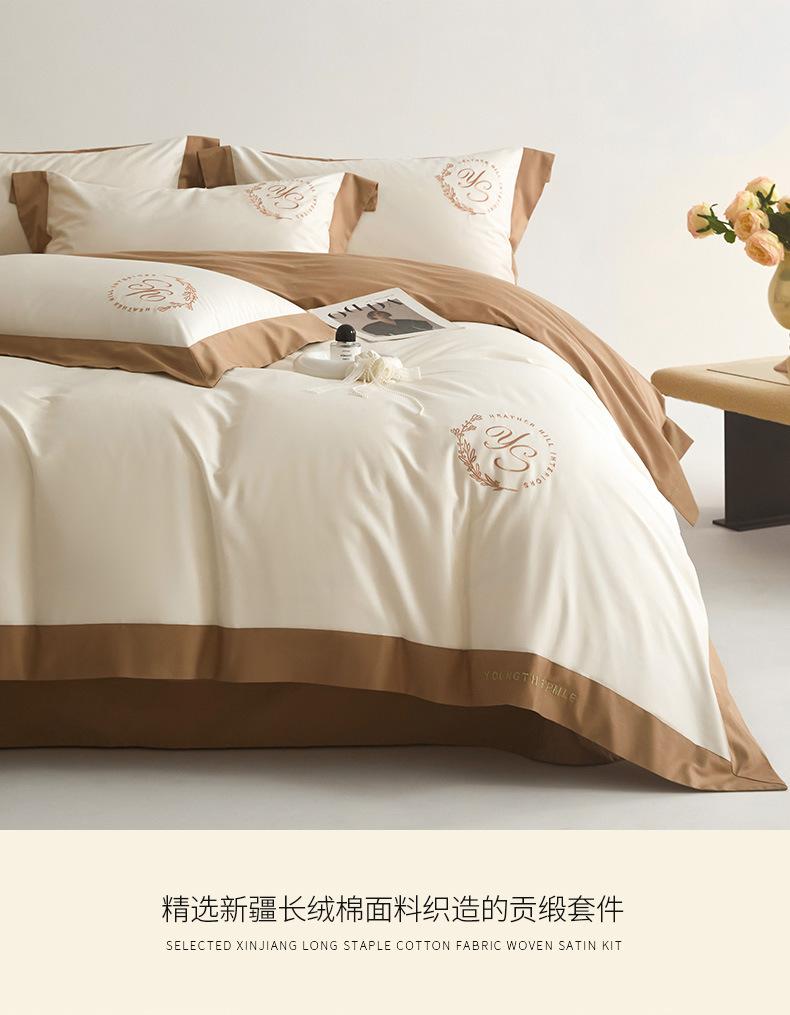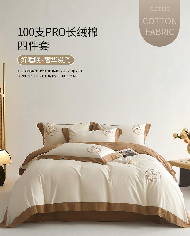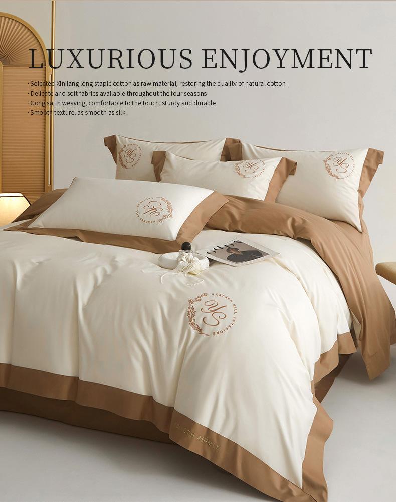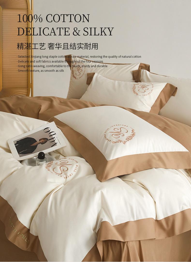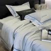 Conjunto de Cama Quatro Peças de Algodão de Fibras Longas 100 Fios, 100% Algodão Puro, Bordado em Cor Sólida, Capa de Edredom, Conjunto Quatro Peças