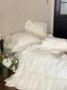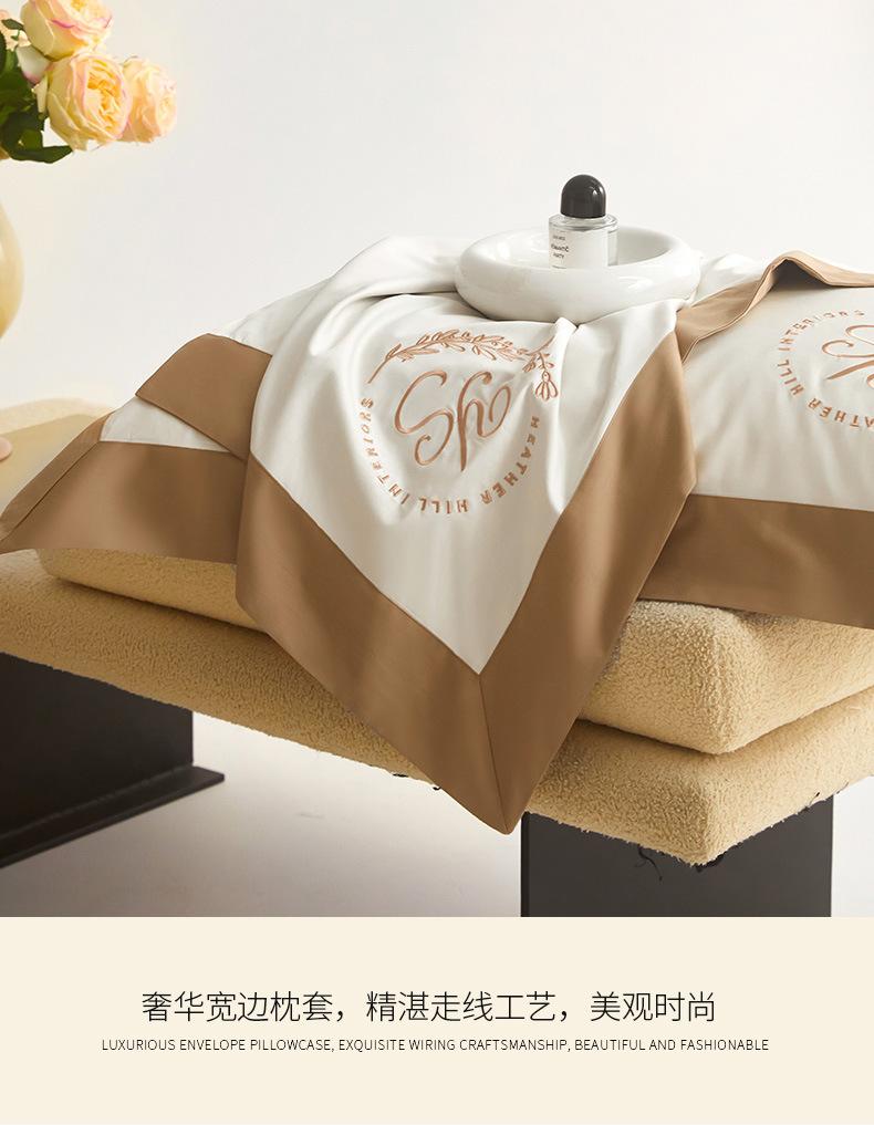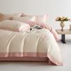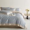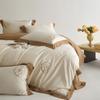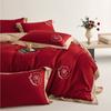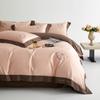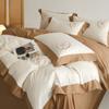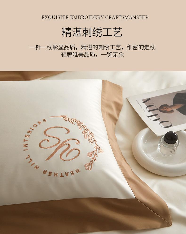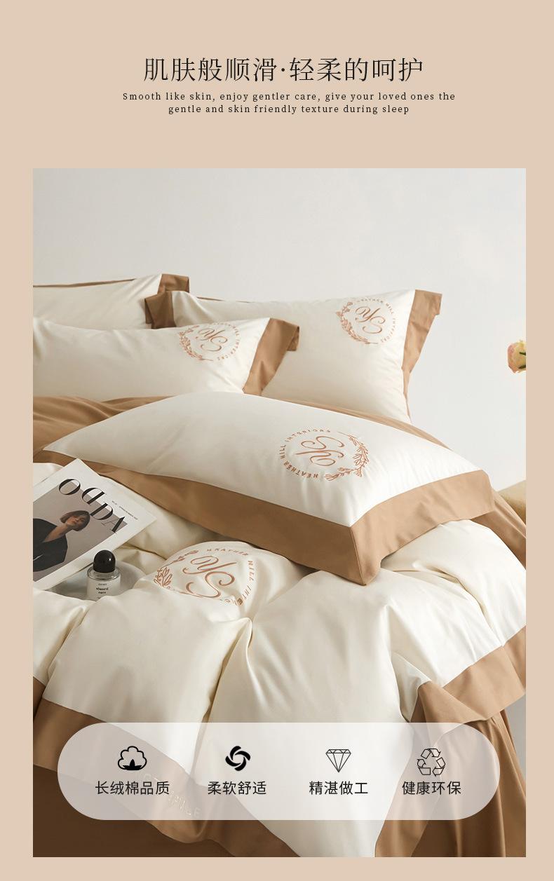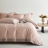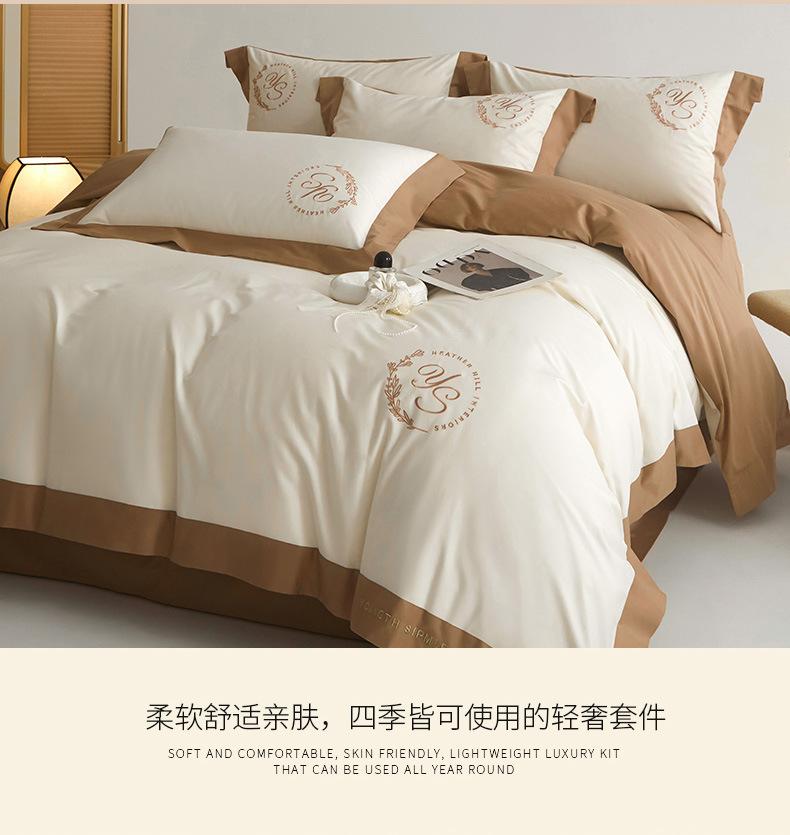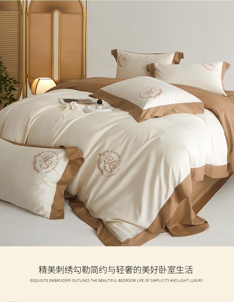Conjunto de Cama Quatro Peças de Algodão de Fibras Longas 100 Fios, 100% Algodão Puro, Bordado em Cor Sólida, Capa de Edredom, Conjunto Quatro Peças