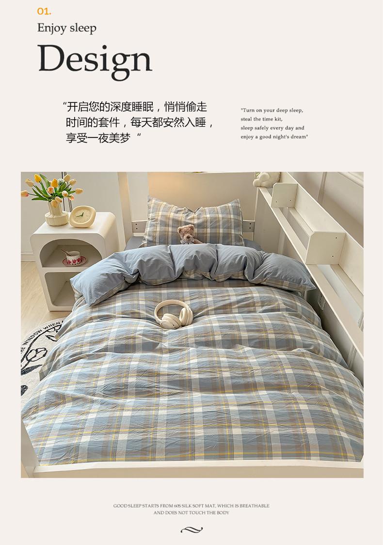 Compre Roupa de Cama Casual Estilo Ins Estilo Japonês Conjunto de Quatro Peças de Algodão Lavado Sem Estampa Estudante Algodão Amigo da Pele Cama Lençóis Jogo de Três Peças no atacado no Joom.pro