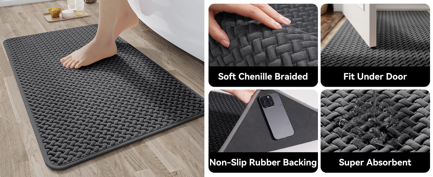 Tapete Absorvente de Banheiro Transfronteiriço, Tapete de Porta de Banheiro, Tapete de Porta Antiderrapante, Tapete para os Pés ao Lado da Banheira, Tapete de Secagem Rápida para Vaso Sanitário