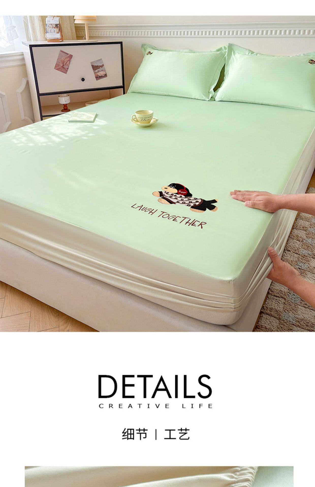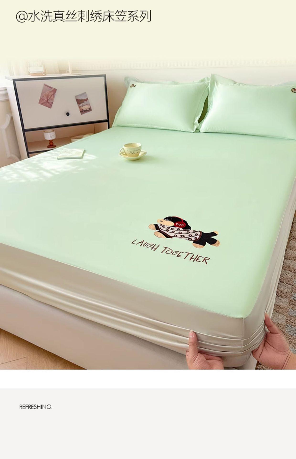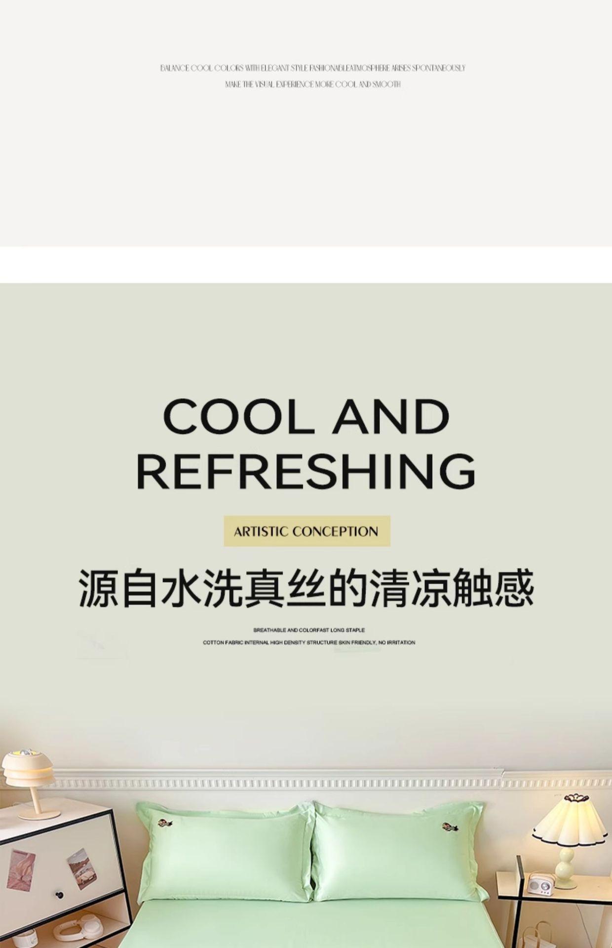 Verão Novo Estilo Seda Lavada Bordado Inglês Cobre Leito Antiderrapante Totalmente Envolvente Capa de Colchão Fronha Conjunto de Três Peças Fresco e Confortável