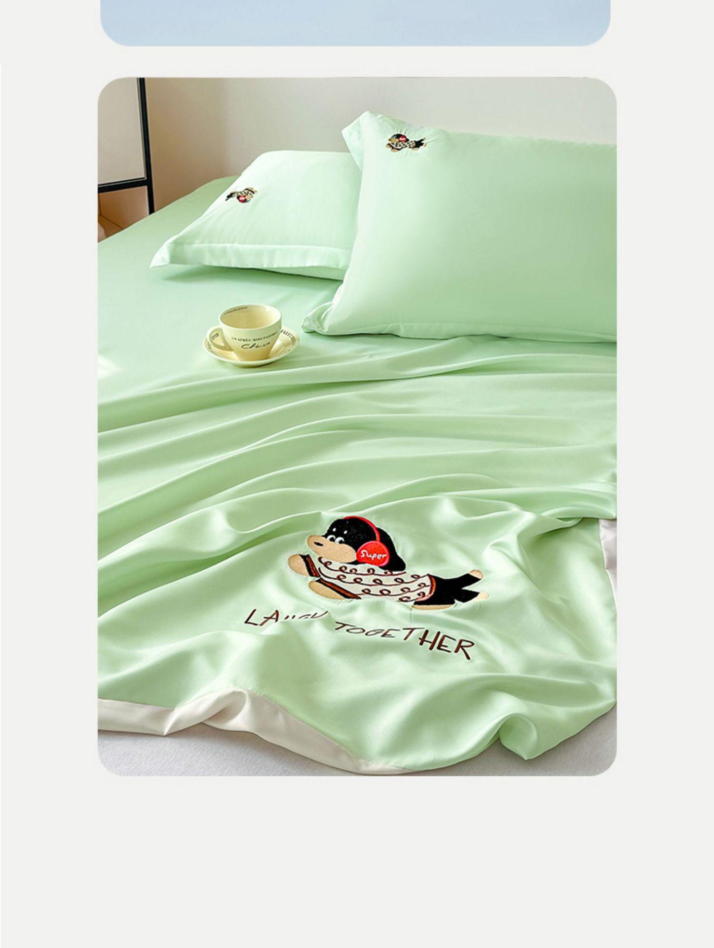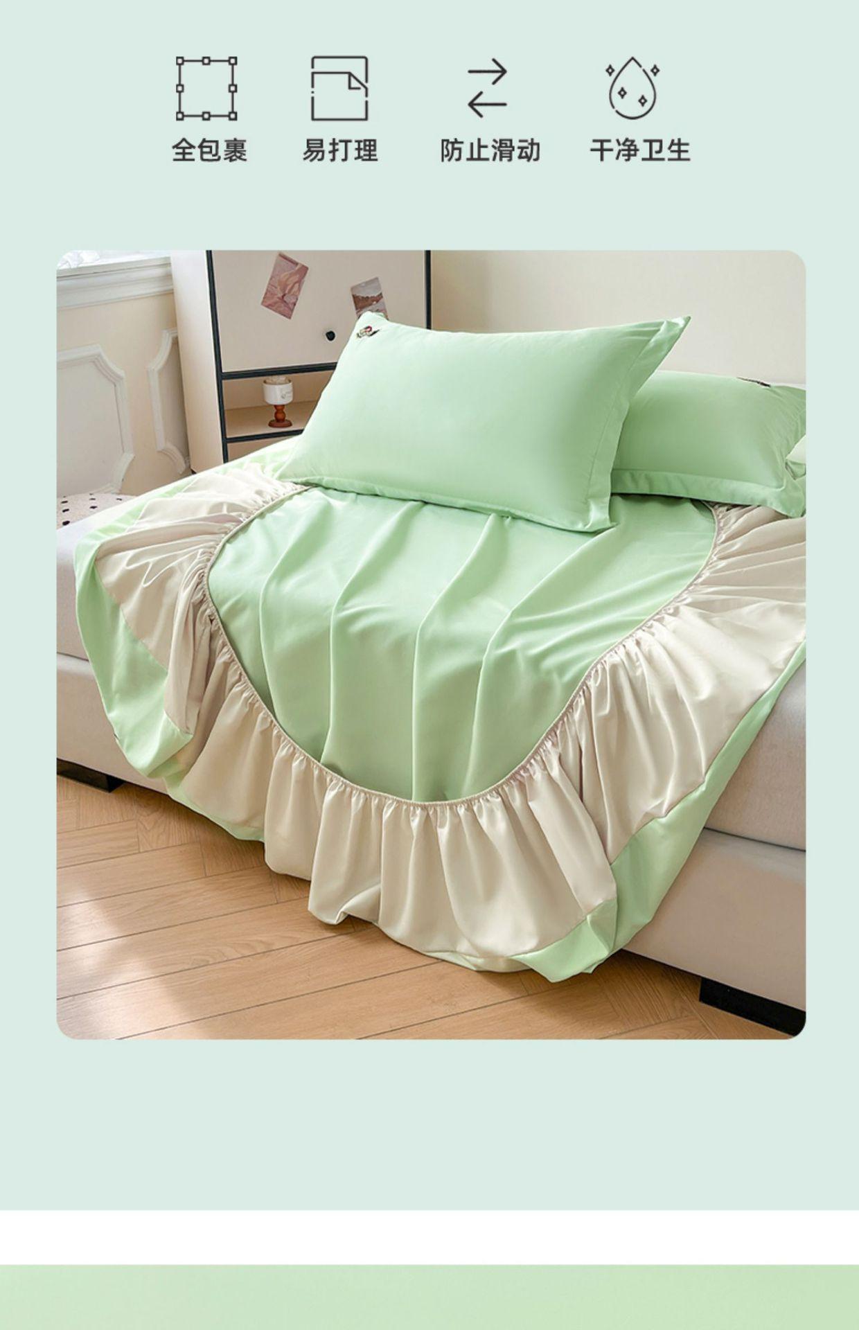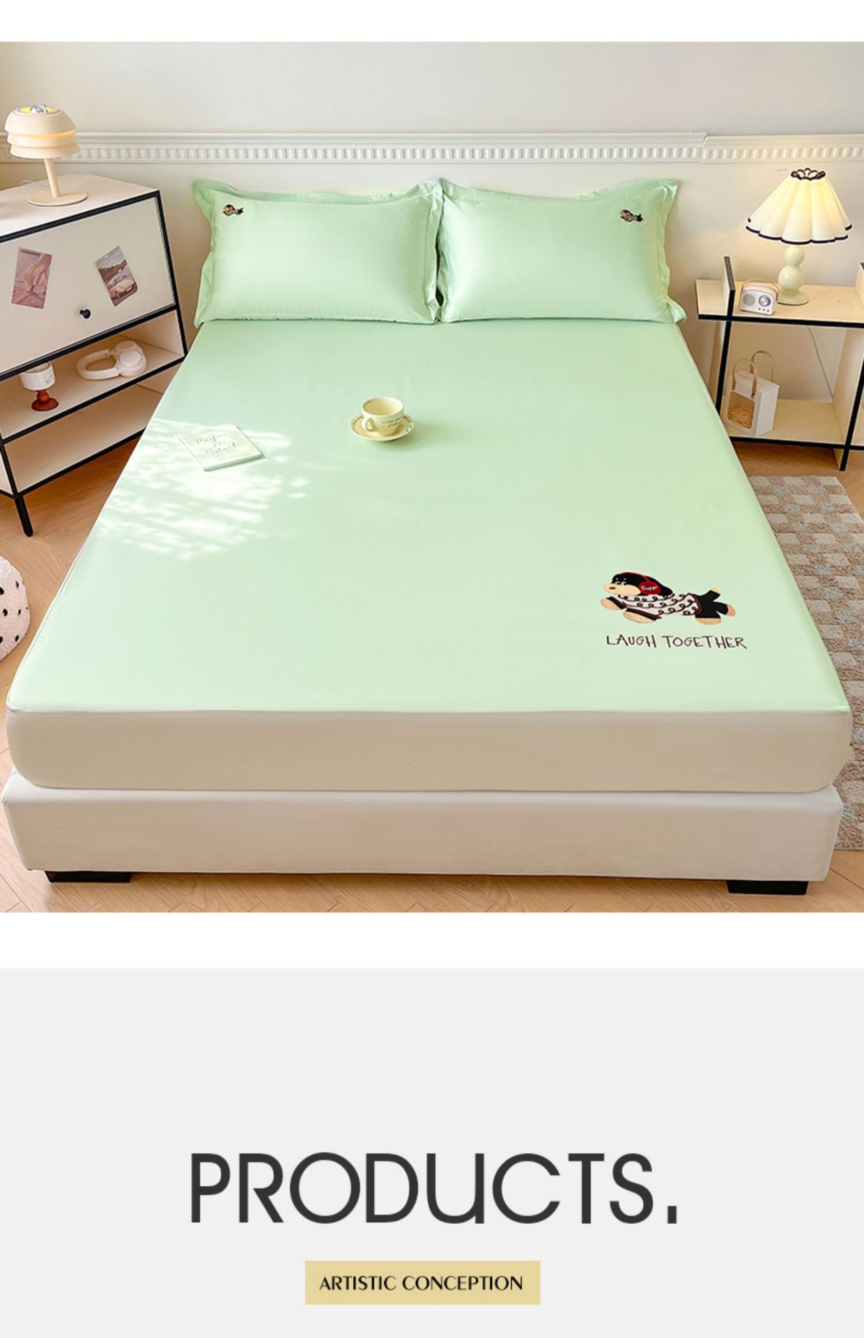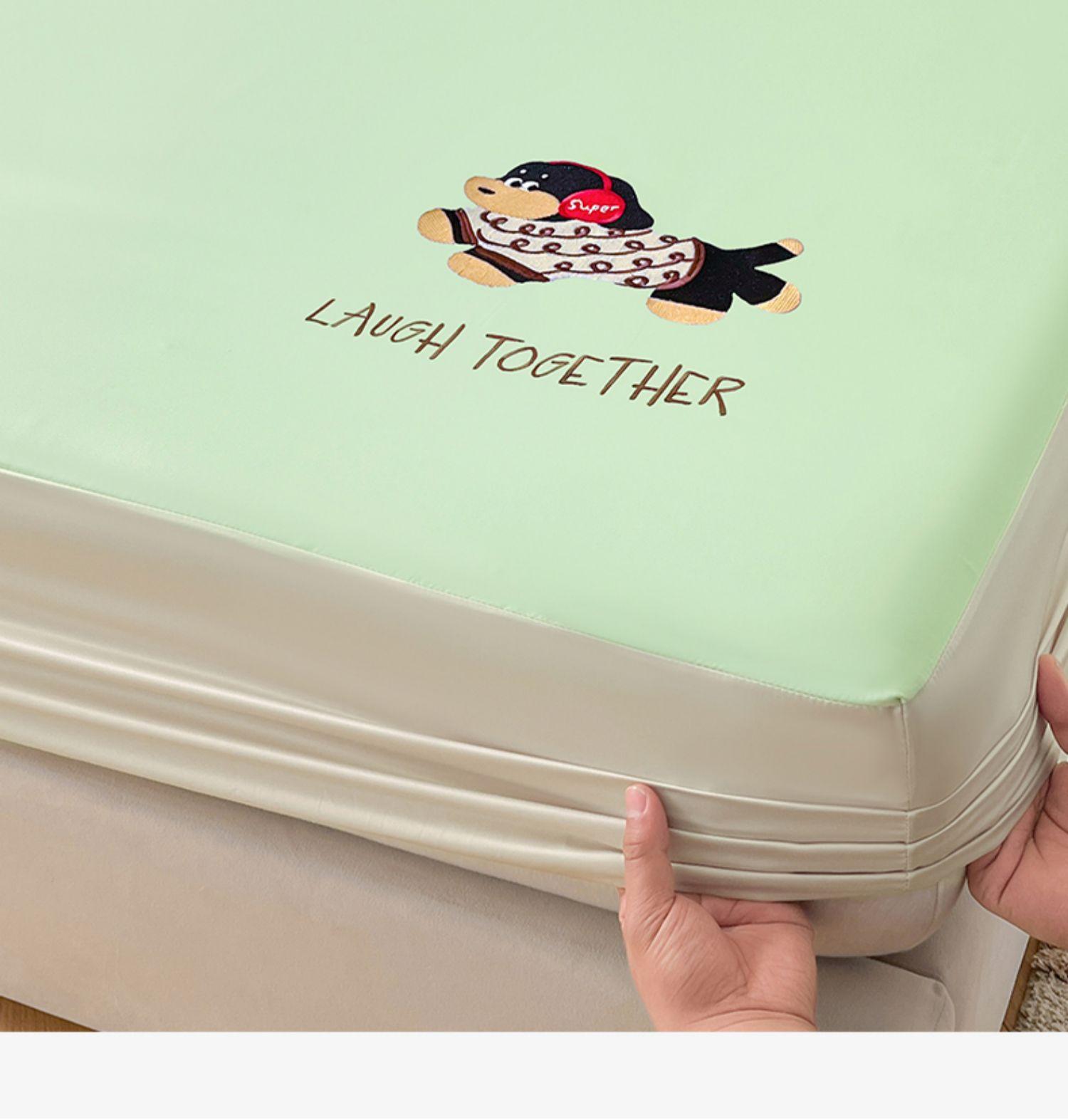 Verão Novo Estilo Seda Lavada Bordado Inglês Cobre Leito Antiderrapante Totalmente Envolvente Capa de Colchão Fronha Conjunto de Três Peças Fresco e Confortável