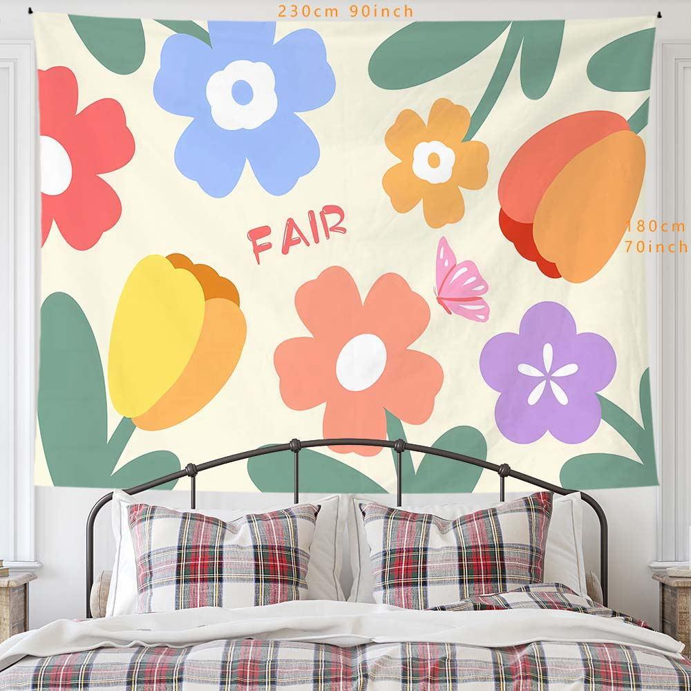 Estilo Ins Pequeno Fresco Pano Pendurado Decoração de Quarto Decoração de B&B Flores Fofas Pano de Fundo de Quarto Pano de Parede Jardim de Infância